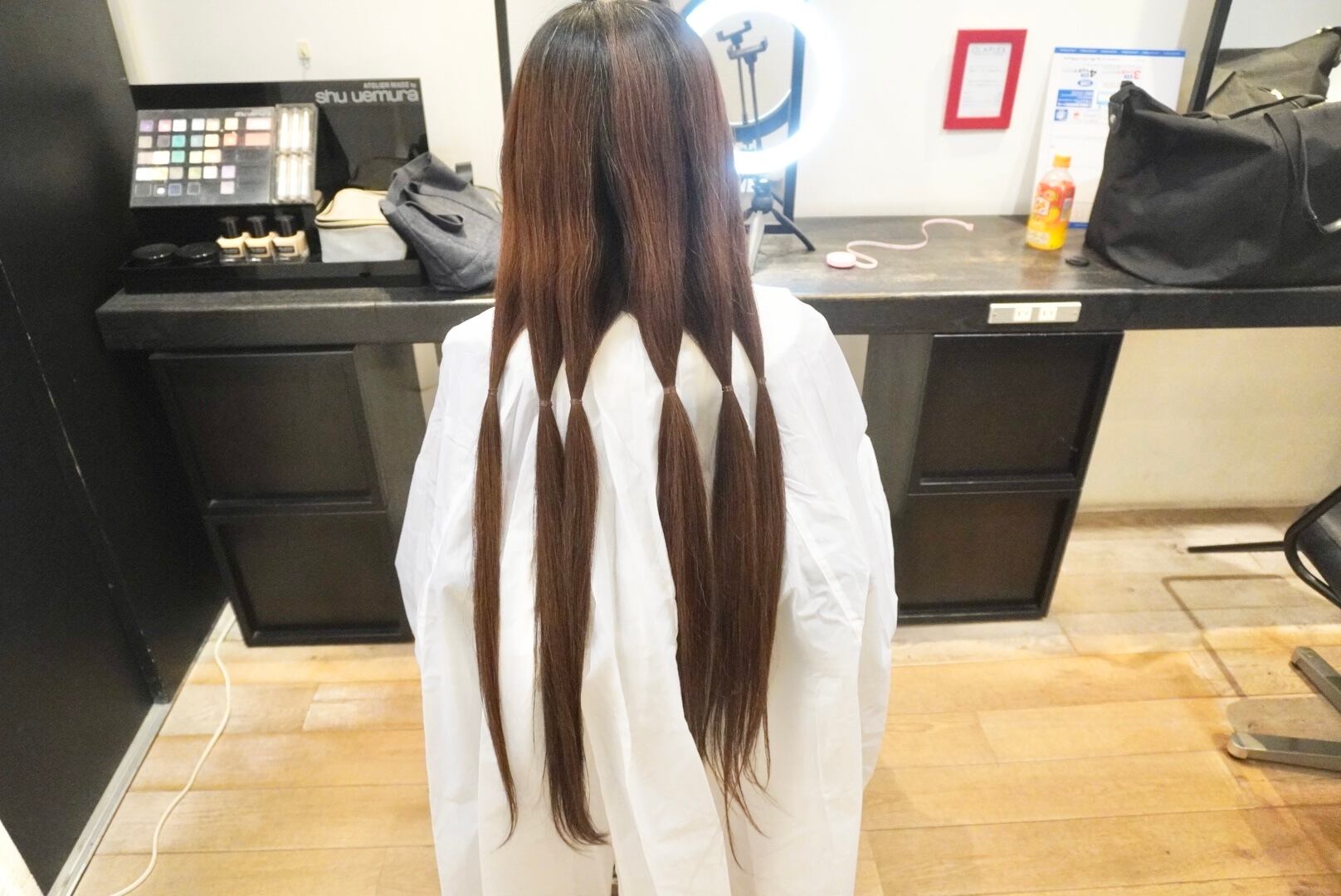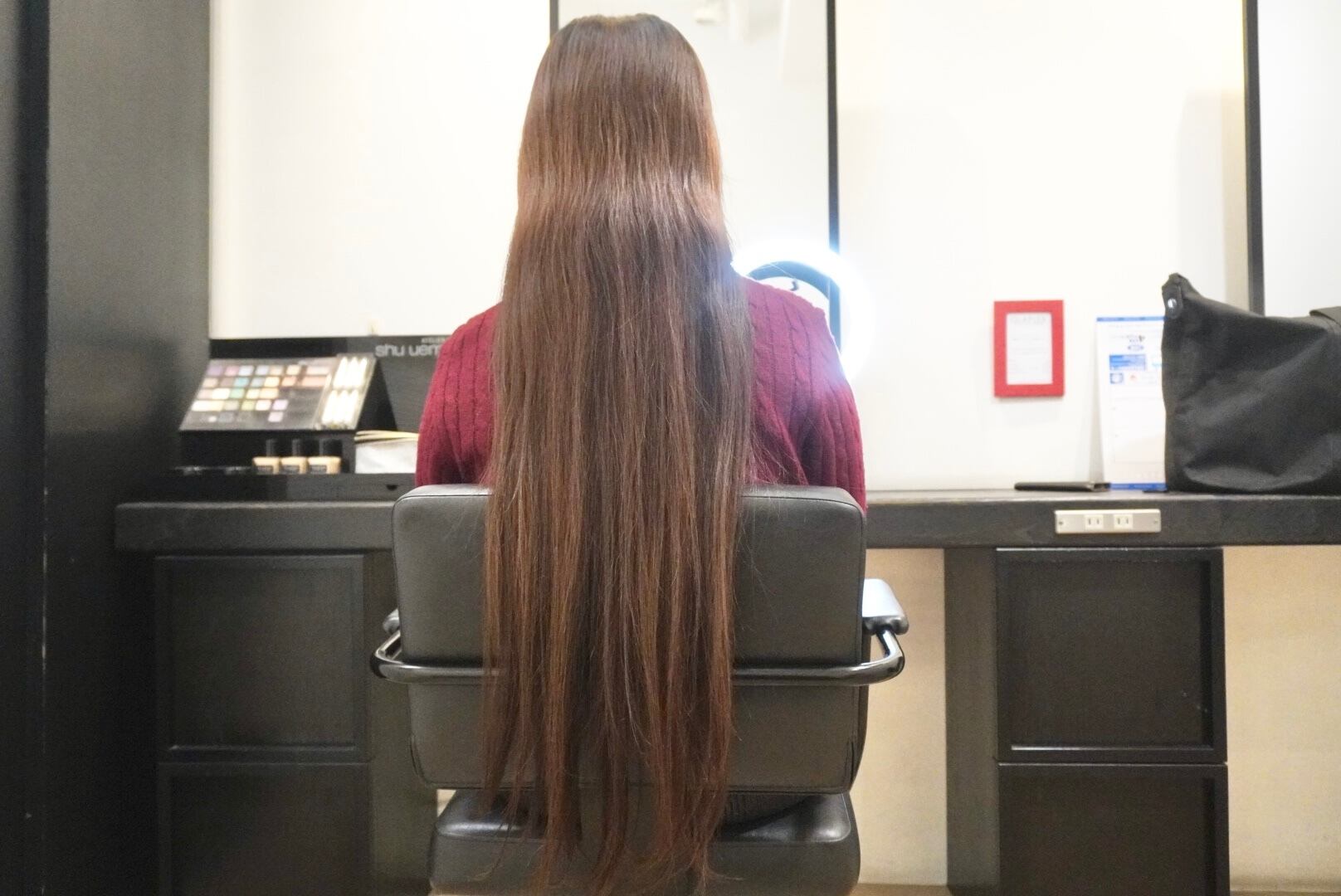 切った髪束は50〜55cm近くあり、全てヘアドネーションさせて頂きました!