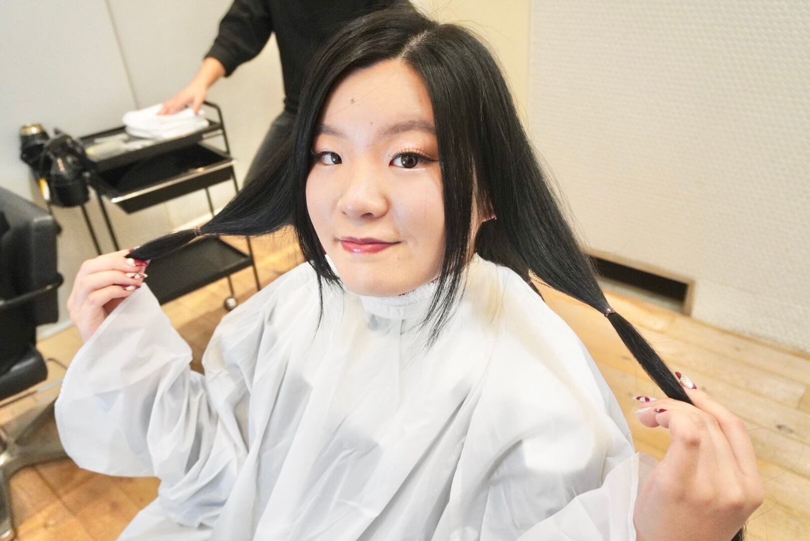 切った髪束は35cm近くあり、全てヘアドネーションさせて頂きました。