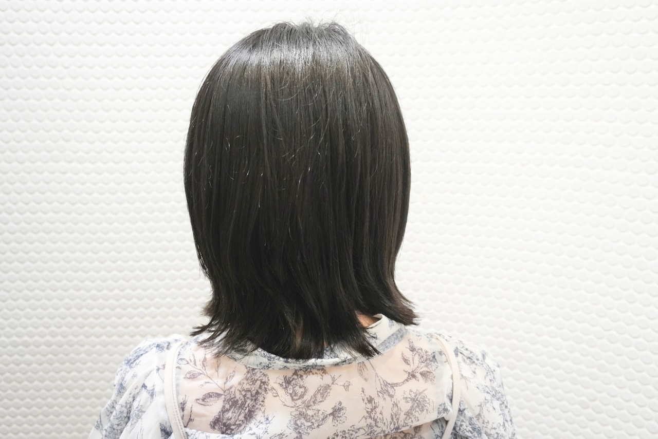 サラサラの黒髪ロングヘアをレイヤーが入った長めのくびれボブヘアにカットし、大変身されました✂︎✂︎