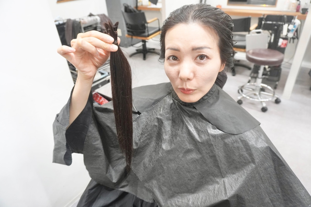 切った髪束は32〜35cm弱ほどあり、全てヘアドネーションさせて頂きました。