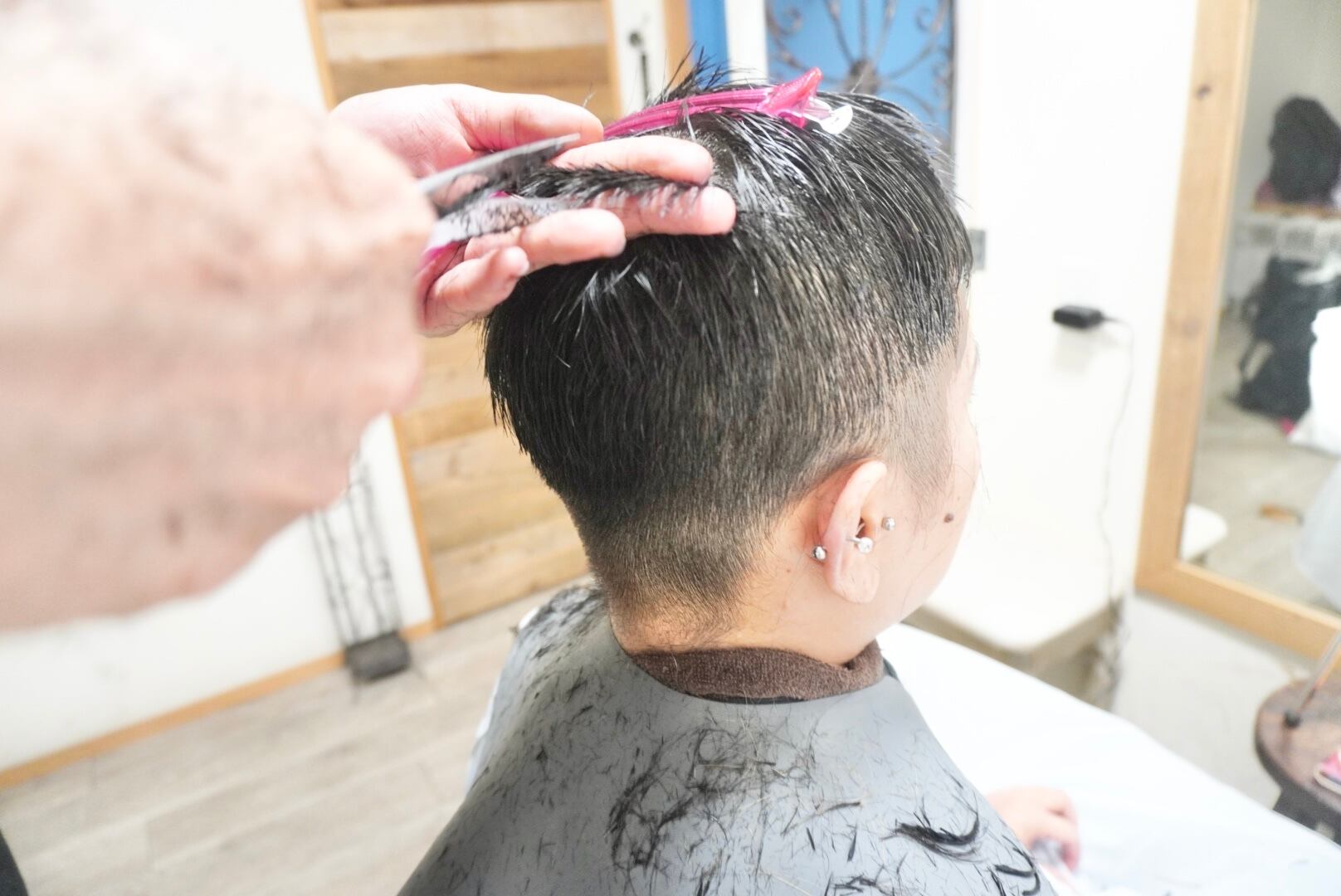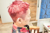 人生最長に伸ばしたロングヘアを人生最短のバズカットにカットし、ブリーチ&カラーリングも行ってピンクレッドカラーに仕上げました✂︎✂︎