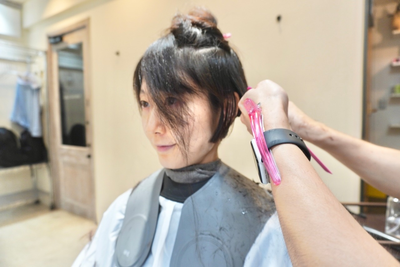 胸下ロングヘアを思い切ってマッシュ風のハンサムショートヘアににバッサリカットし、大胆にイメチェンされました!