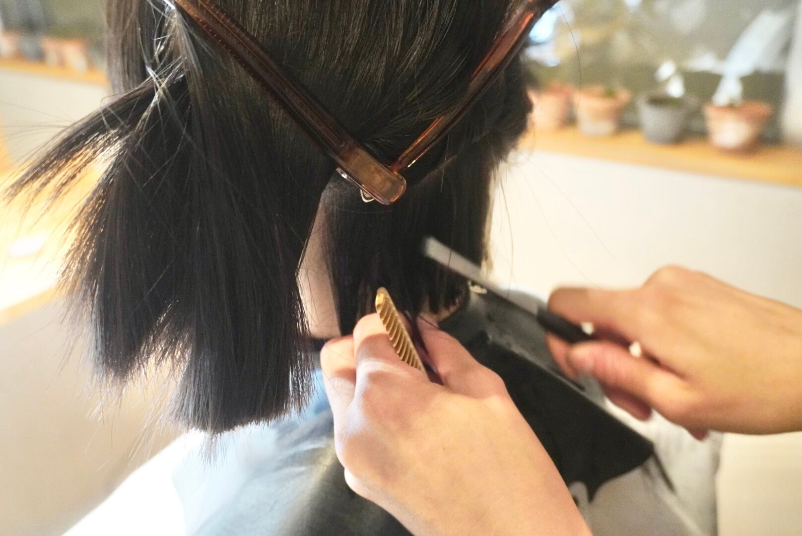 胸下ロングヘアをバッサリと人生最短の外ハネ風ボブヘアにカットし、大変身されました!