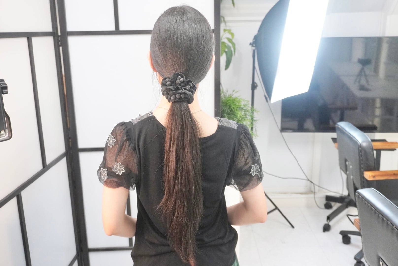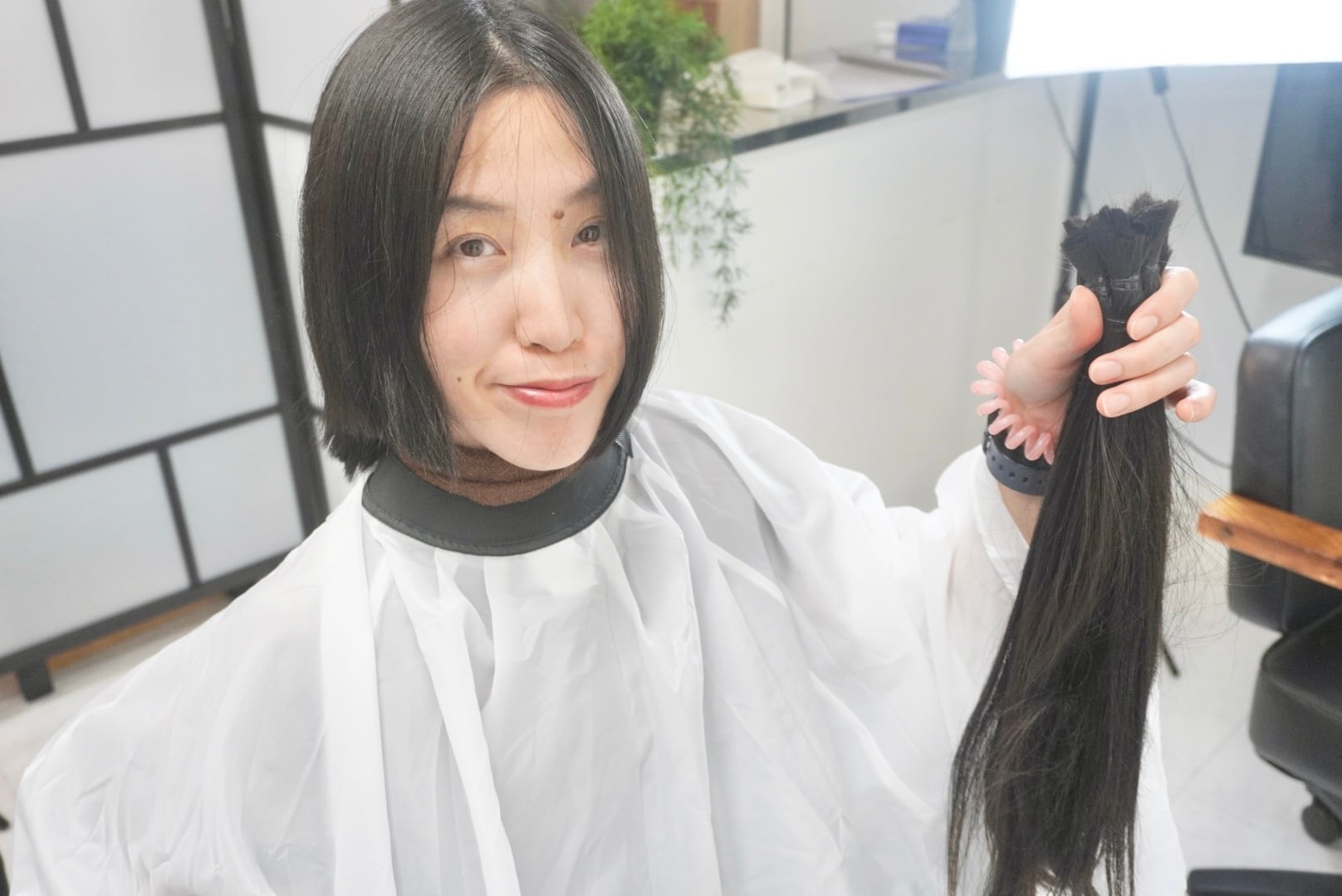 切った髪束は35〜40cm近くあり、全てヘアドネーションさせて頂きます。