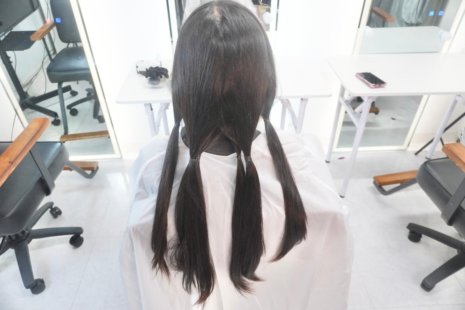 切った髪束は35〜40cm近くあり、全てヘアドネーションさせて頂きます。