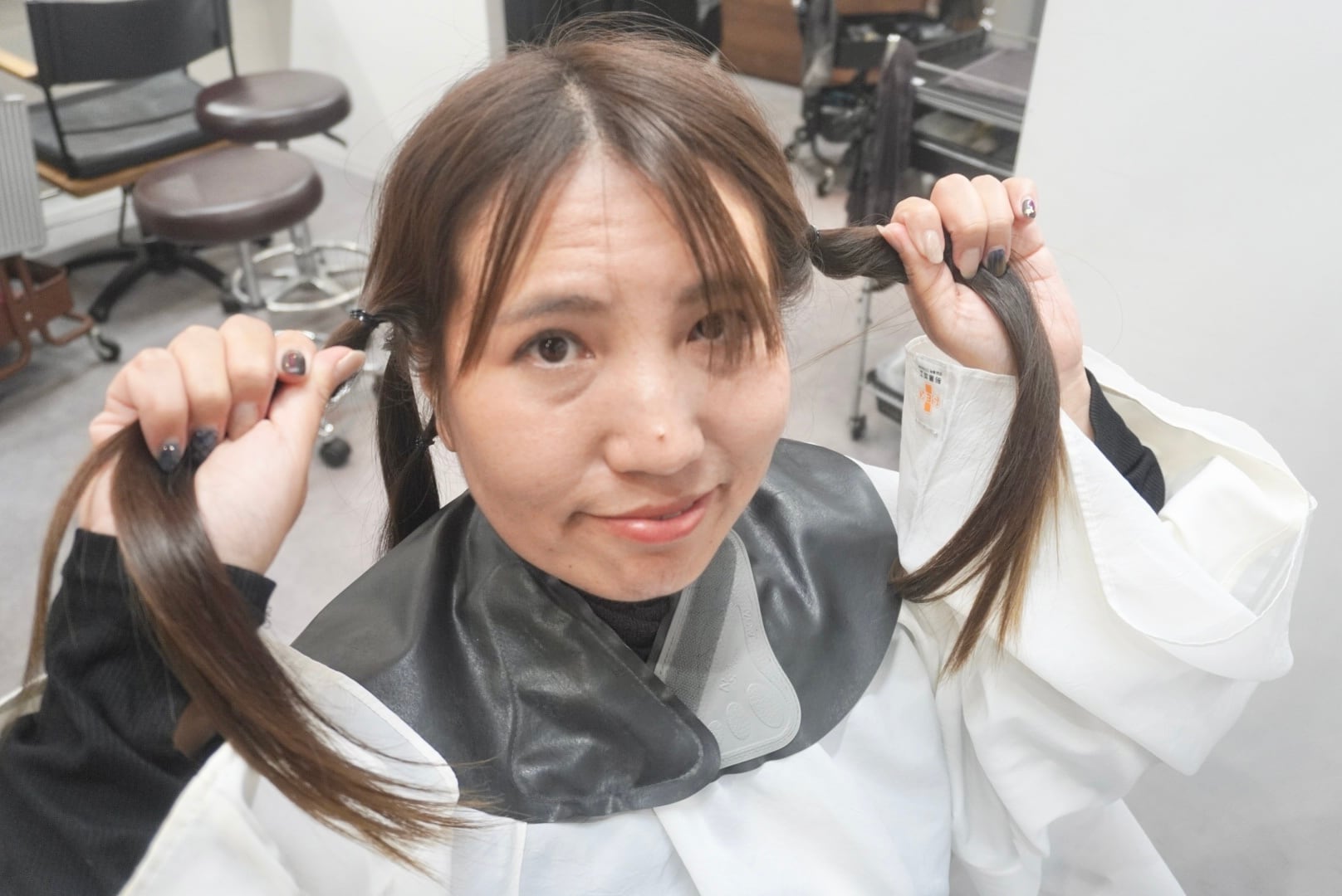 切った髪束は32cmほどあり、今回もヘアドネーションを行いました。