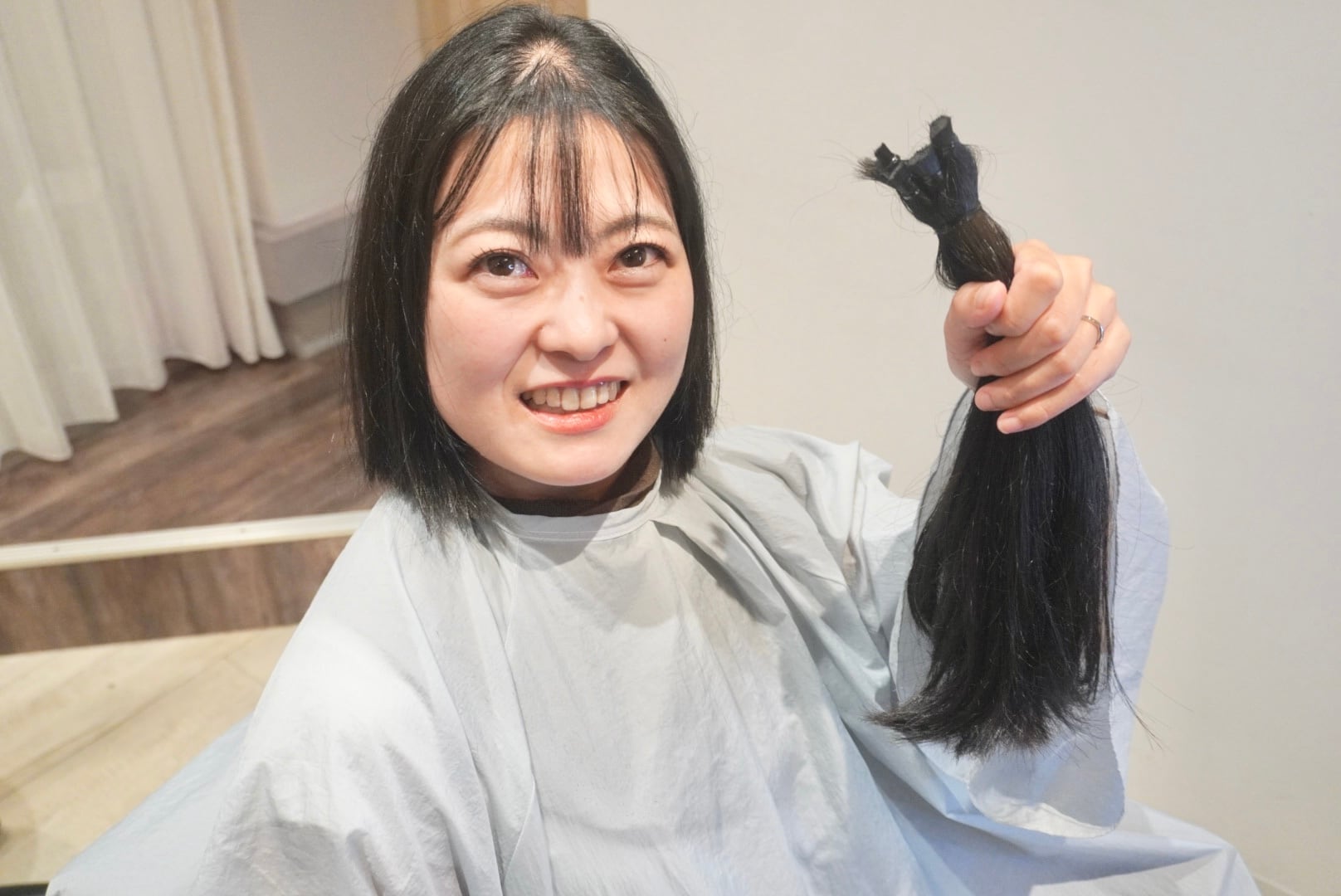 切った髪束は31cm近くあり、モデル様2回目のヘアドネーションを行いました。
