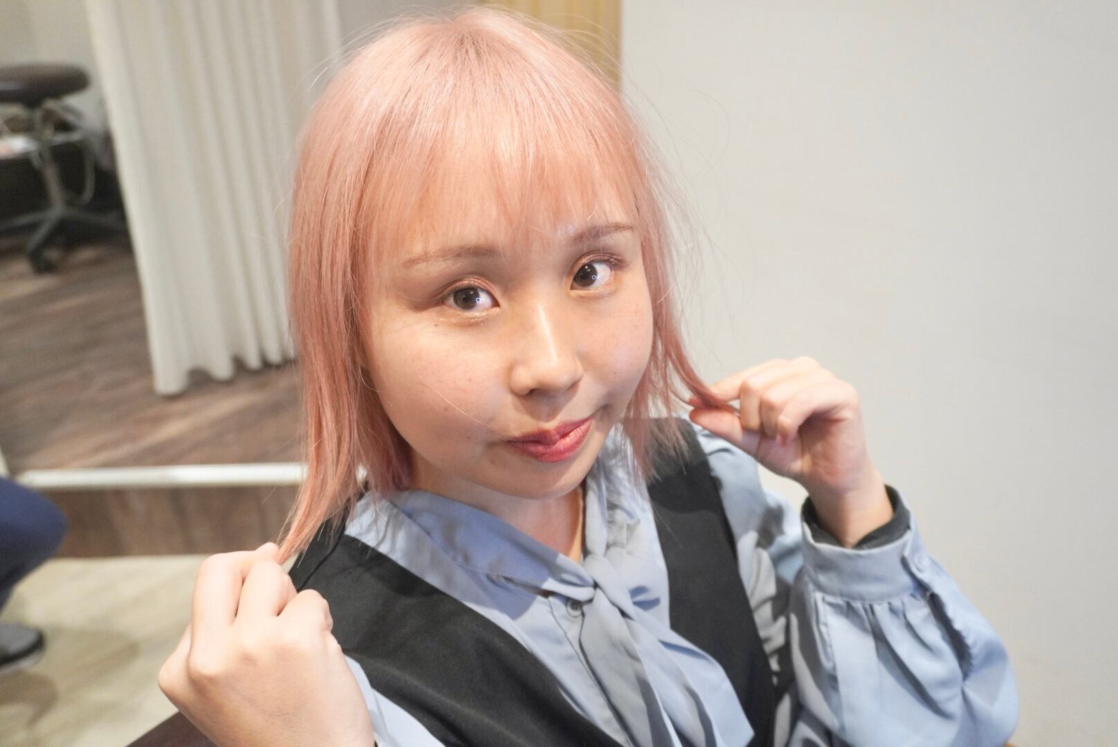 今回はカラーリングも行い、ブリーチも行ってピンク系のカラーリングに仕上げました!