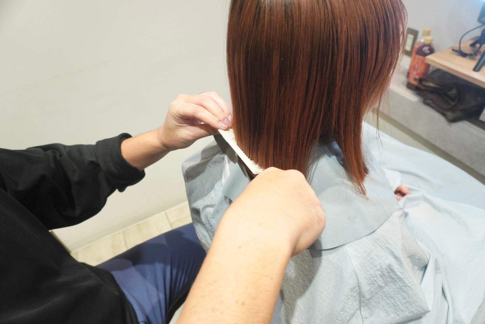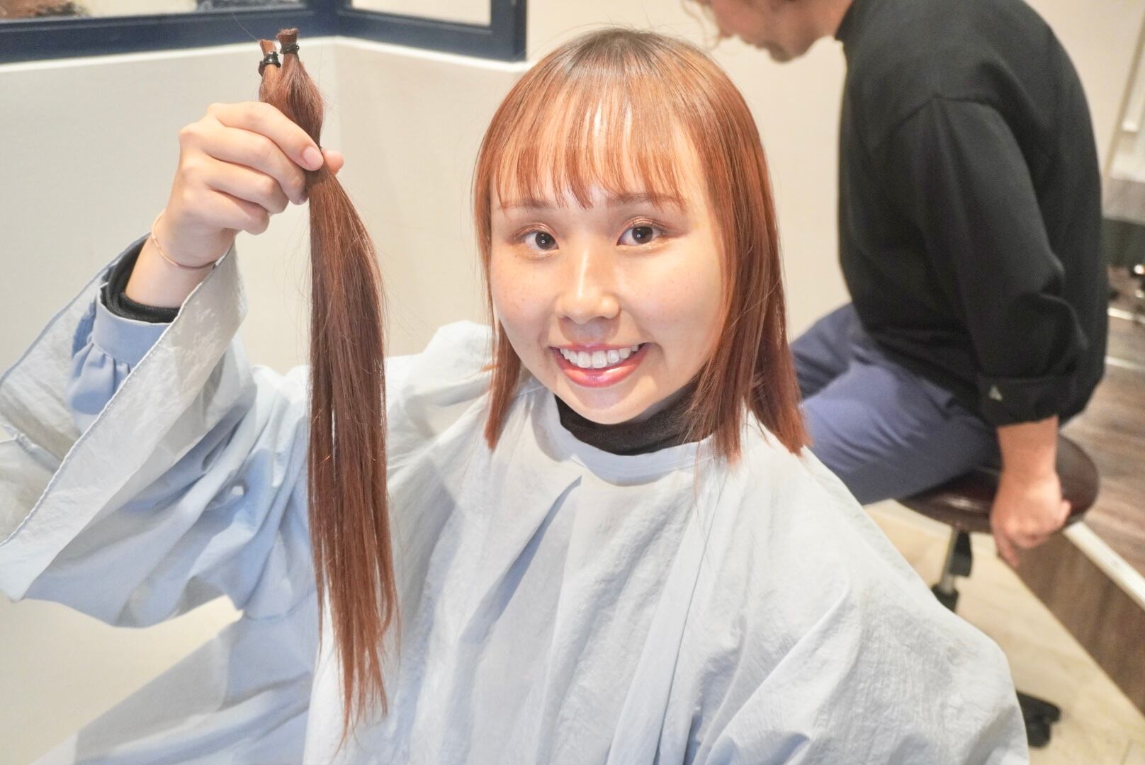 切った髪束は35cm近くあり、全てヘアドネーションさせて頂きました。
