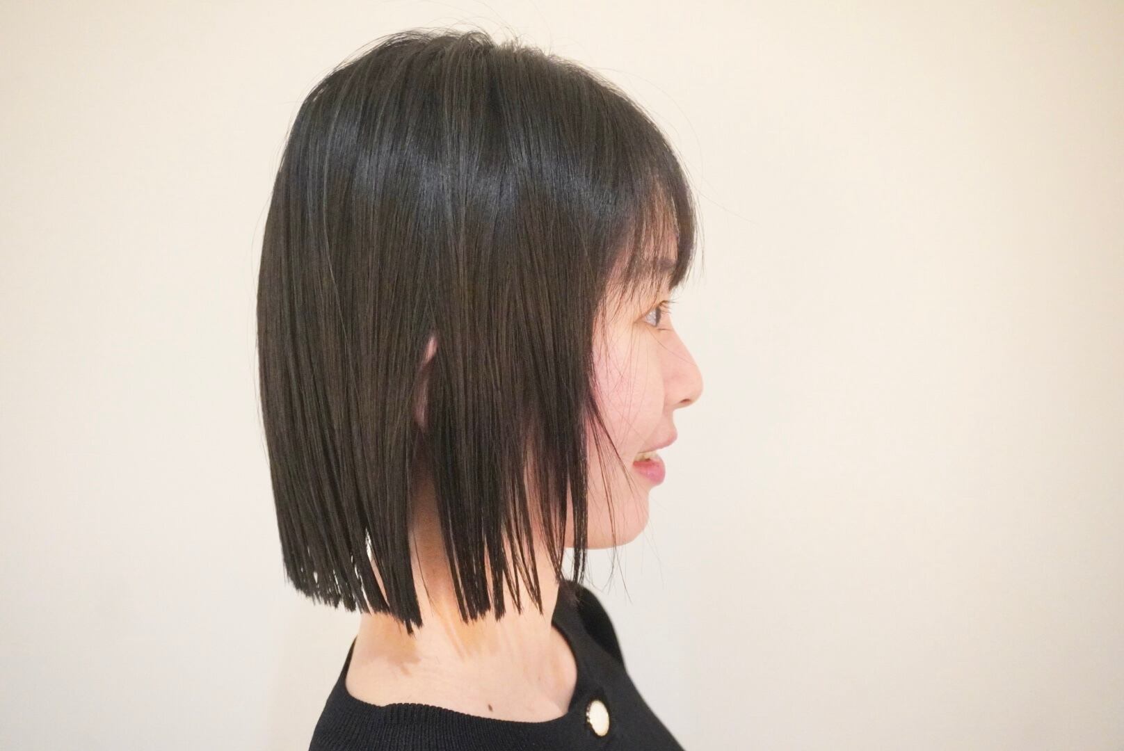 鳩尾近くのロングヘアを人生最短の切りっぱなし風ボブスタイルにカットし大変身されました!!