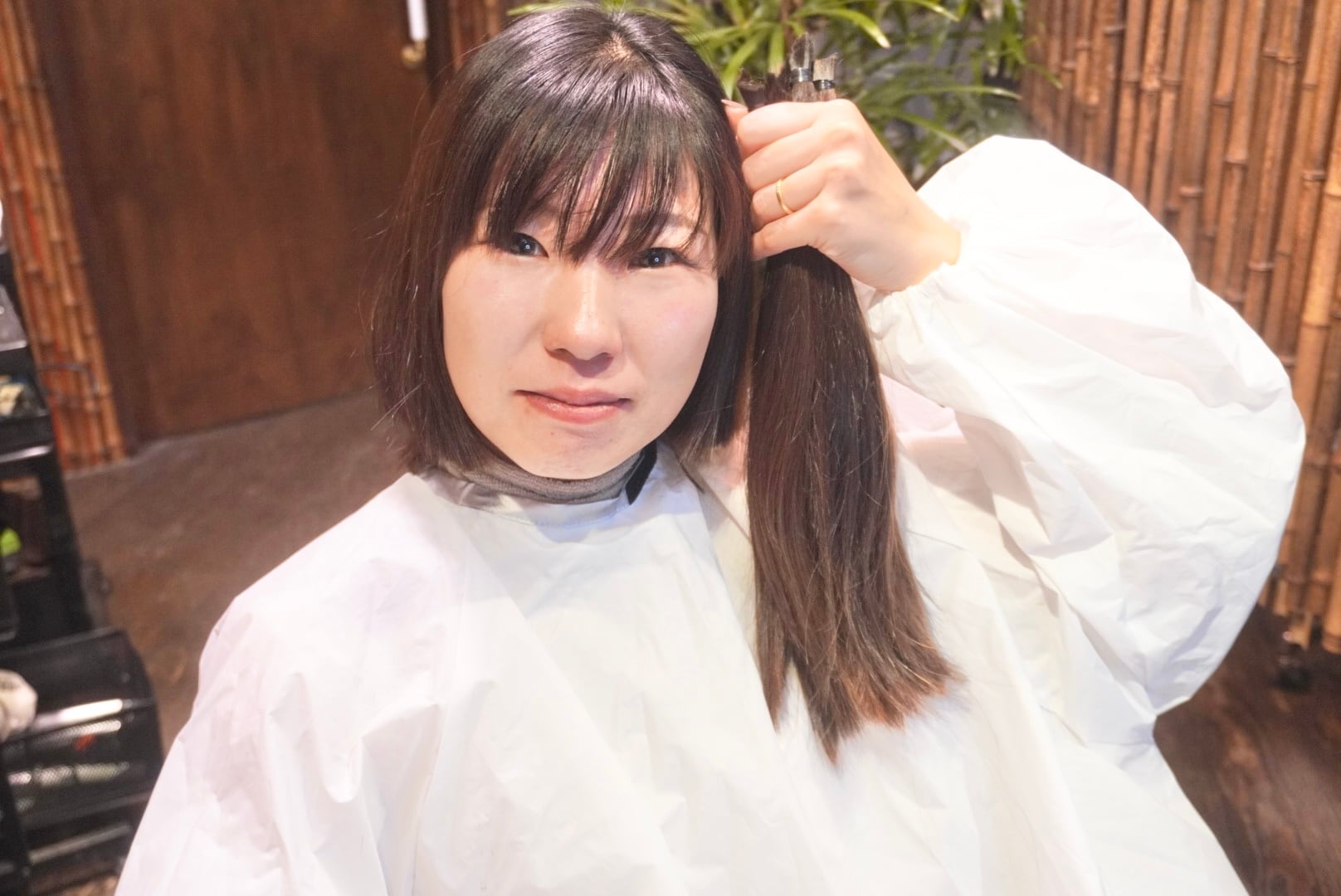 切った髪束は35cmあり、ヘアドネーションをおこなっております。
