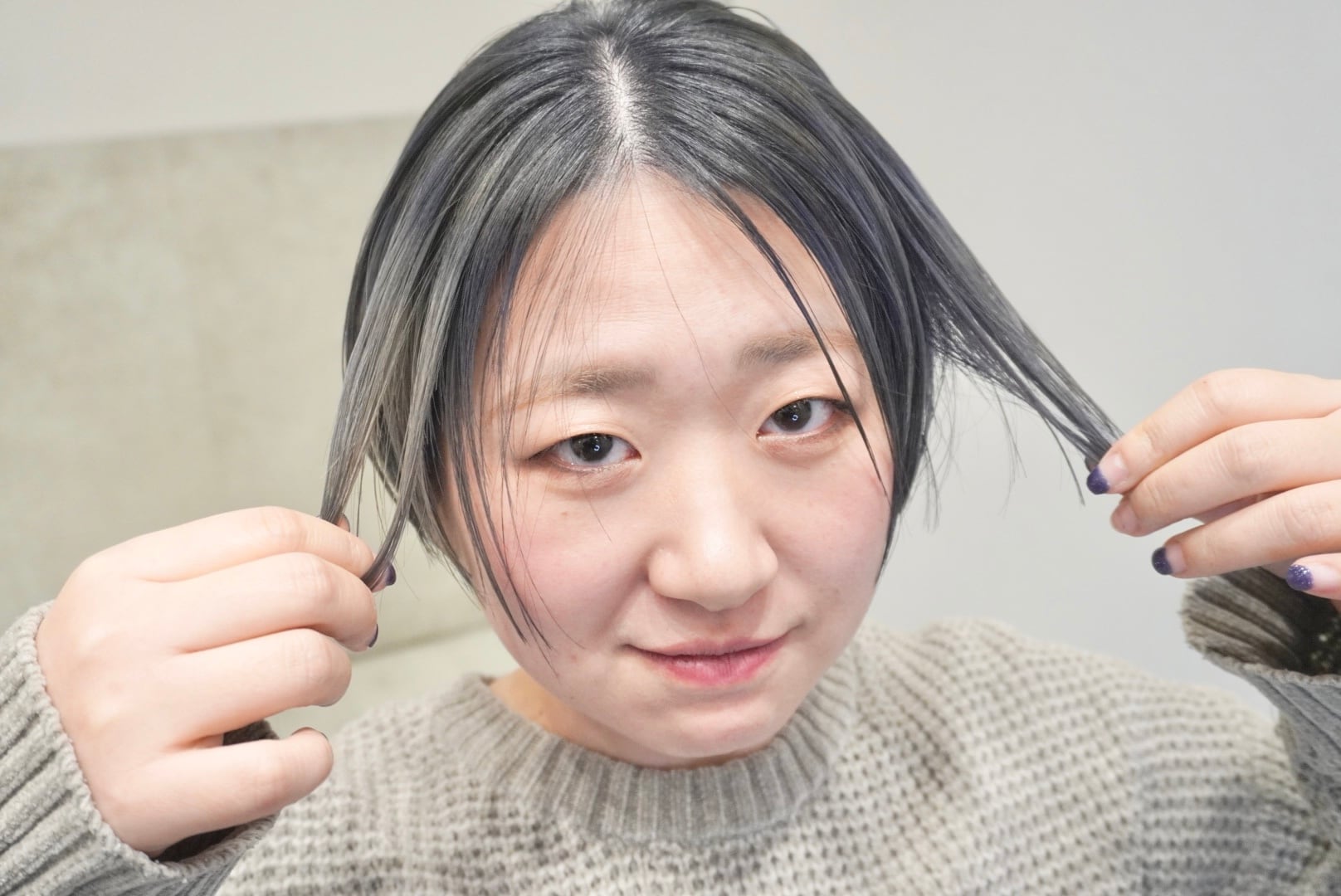 人生最長の長さの髪を6年ぶりにハンサムショートカットにバッサリとカットし、カラーリングも行ってブリーチ込みで透明感あるネイビーカラーに仕上げました!
