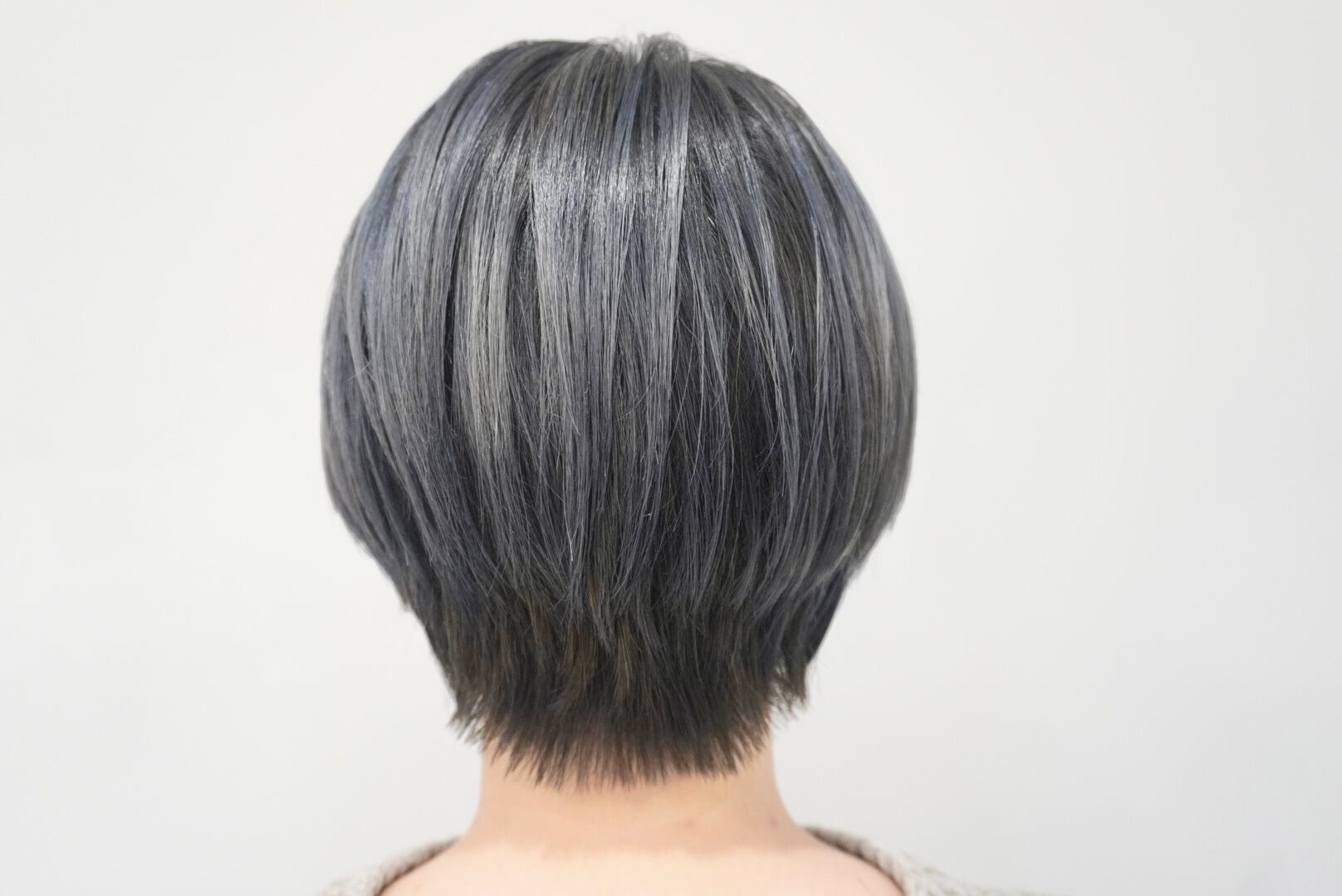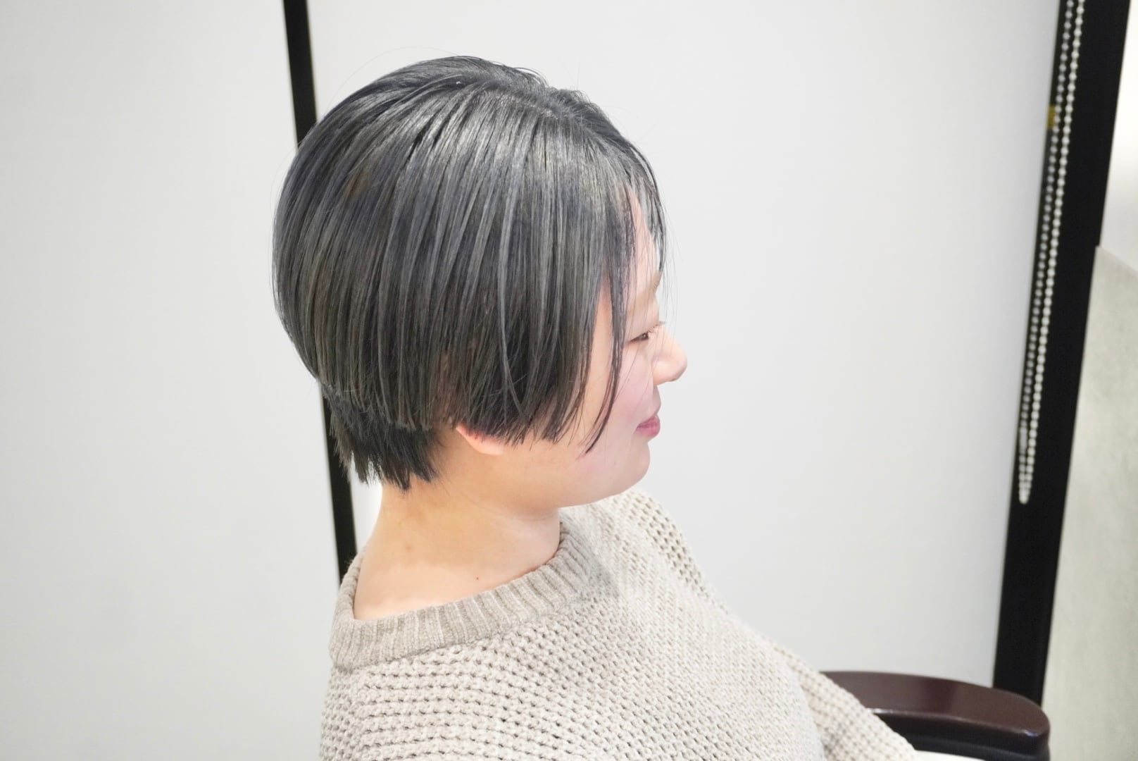 人生最長の長さの髪を6年ぶりにハンサムショートカットにバッサリとカットし、カラーリングも行ってブリーチ込みで透明感あるネイビーカラーに仕上げました!