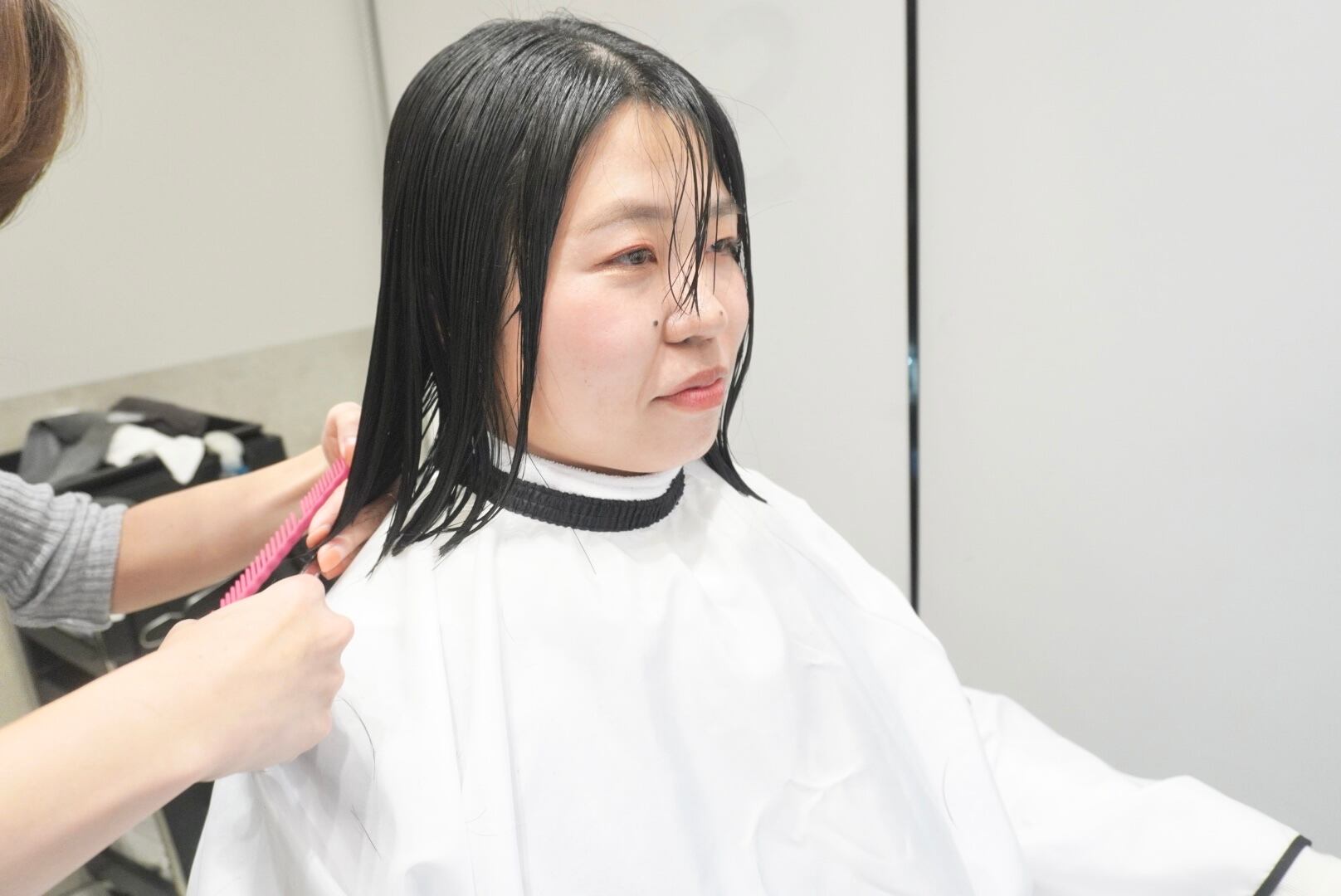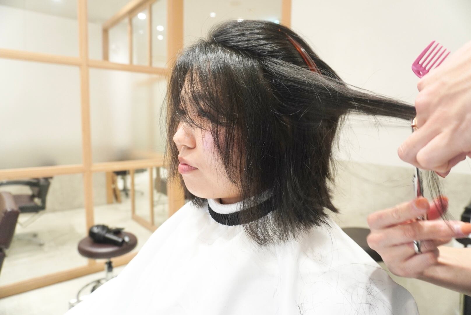 前回撮影から伸ばした髪をバッサリと長めの外ハネボブスタイルにカットし、ガラリとイメチェンされました!!