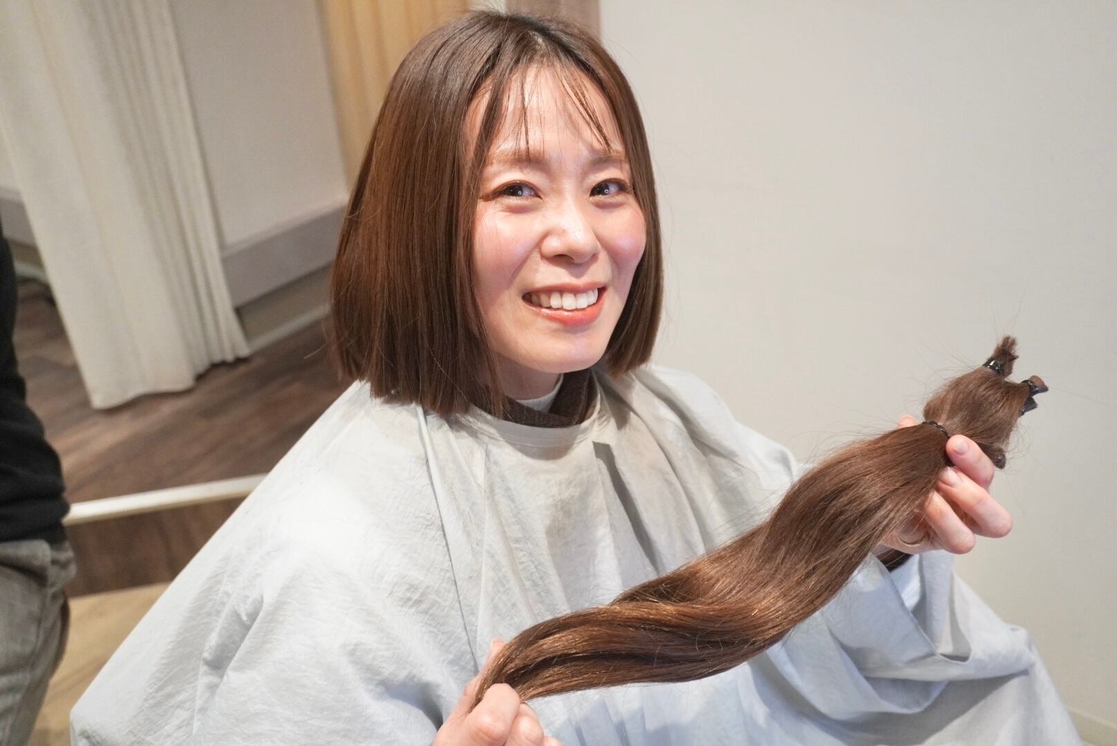 切った髪束は35〜40cm近くあり、全てのヘアドネーションさせて頂きました。