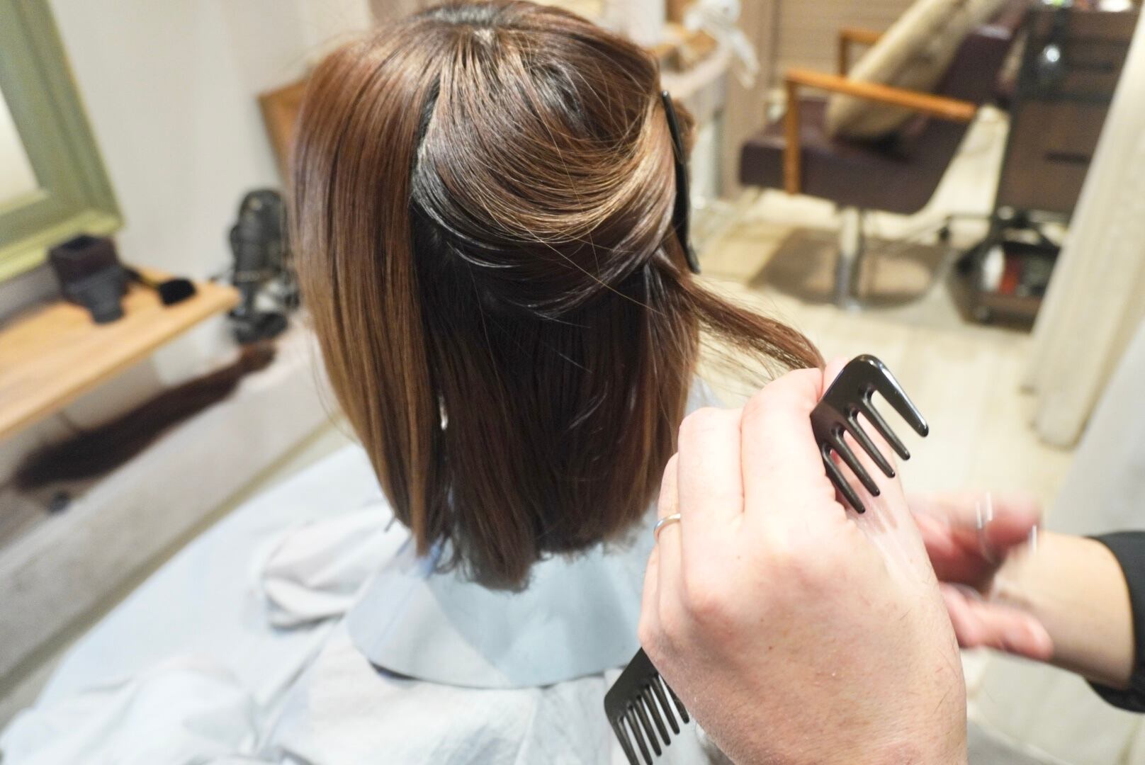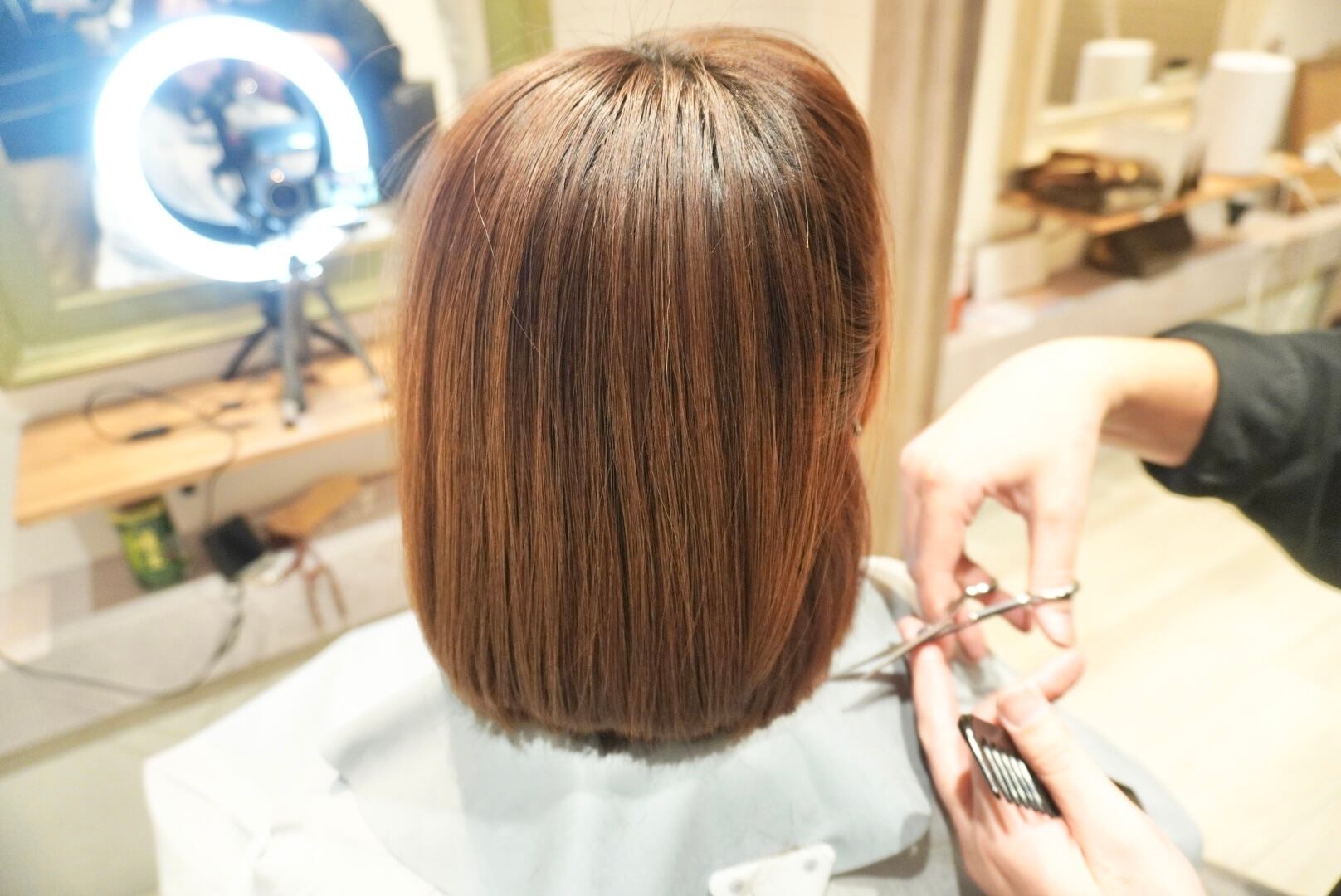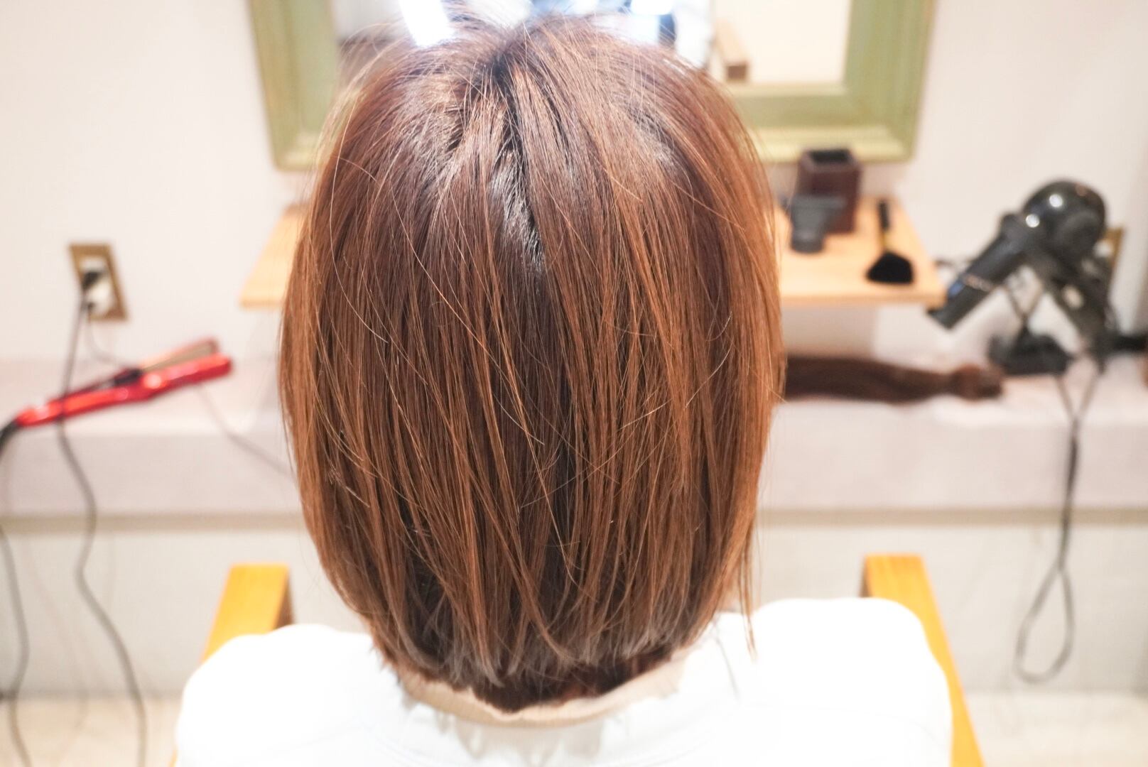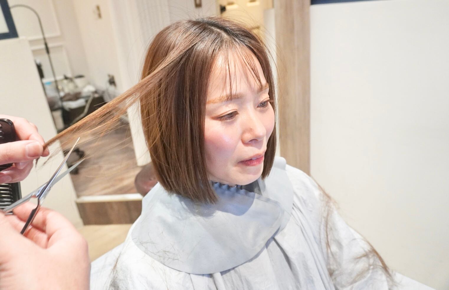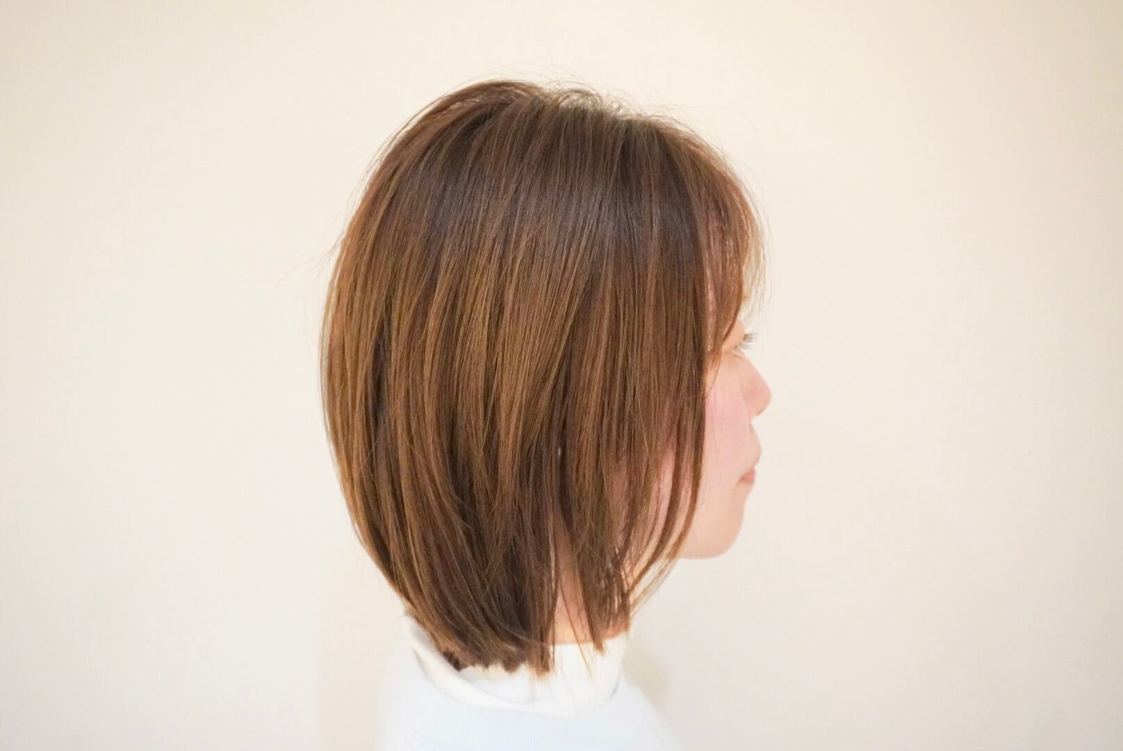 4年半ぶりに長く伸ばした髪をバッサリとカットし、くびれボブスタイルに仕上げました。