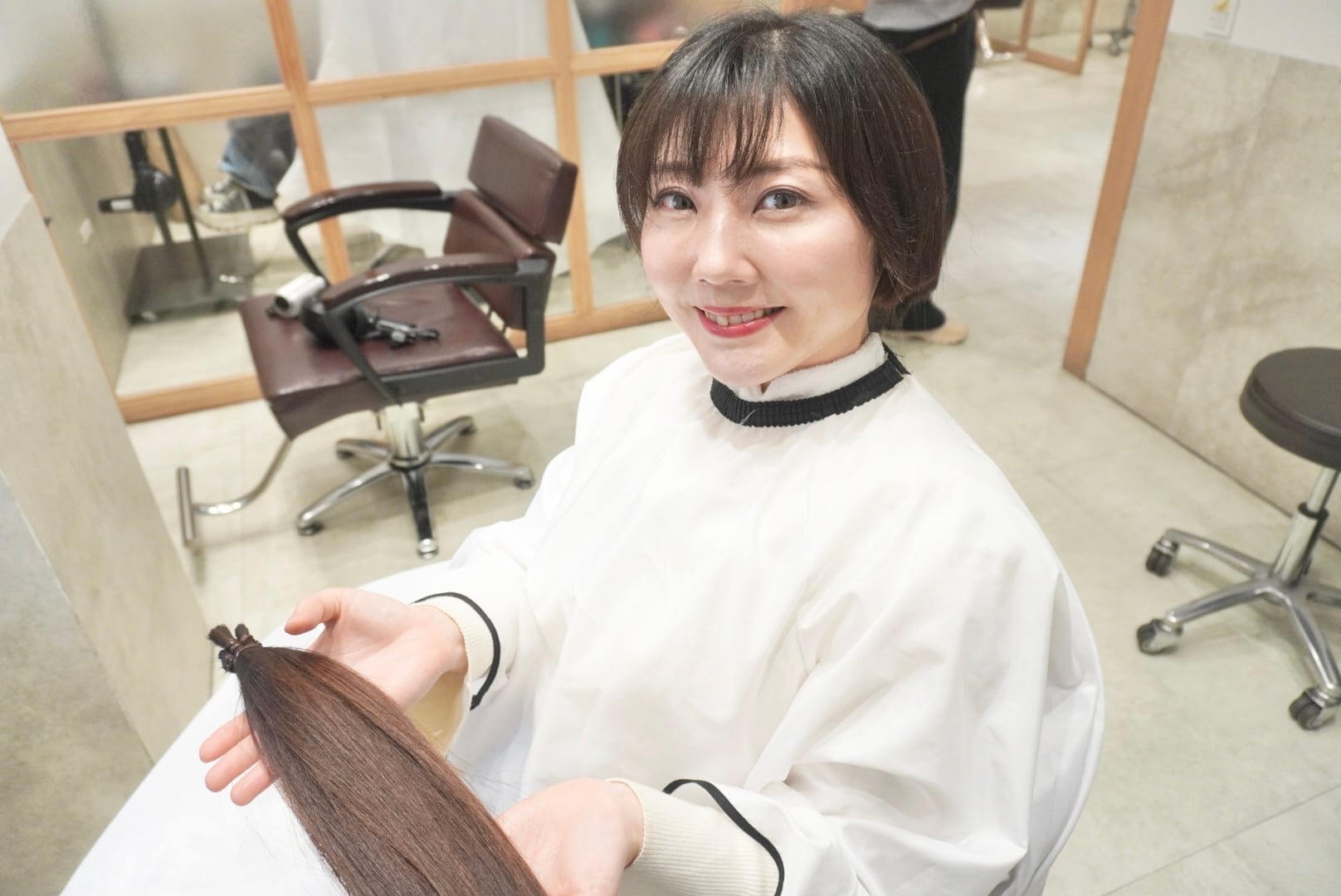 切った髪束は31cm近くあり全てヘアドネーションさせて頂き、モデル様5回目のヘアドネーションを達成しました!!!
