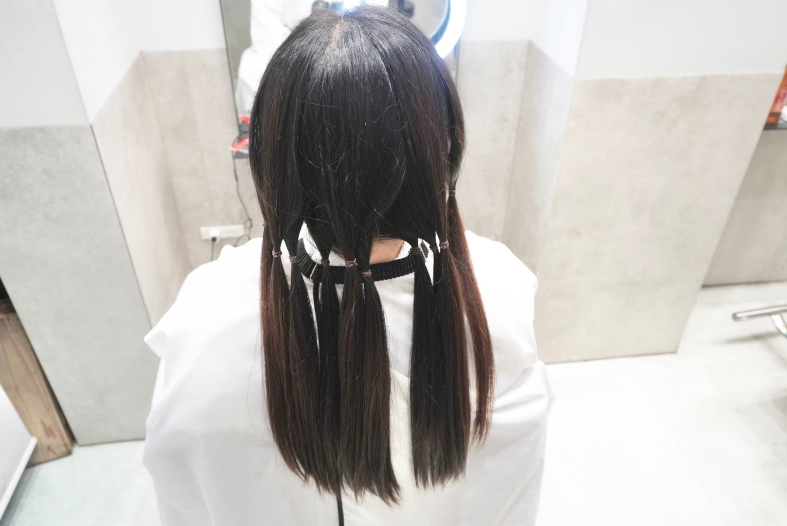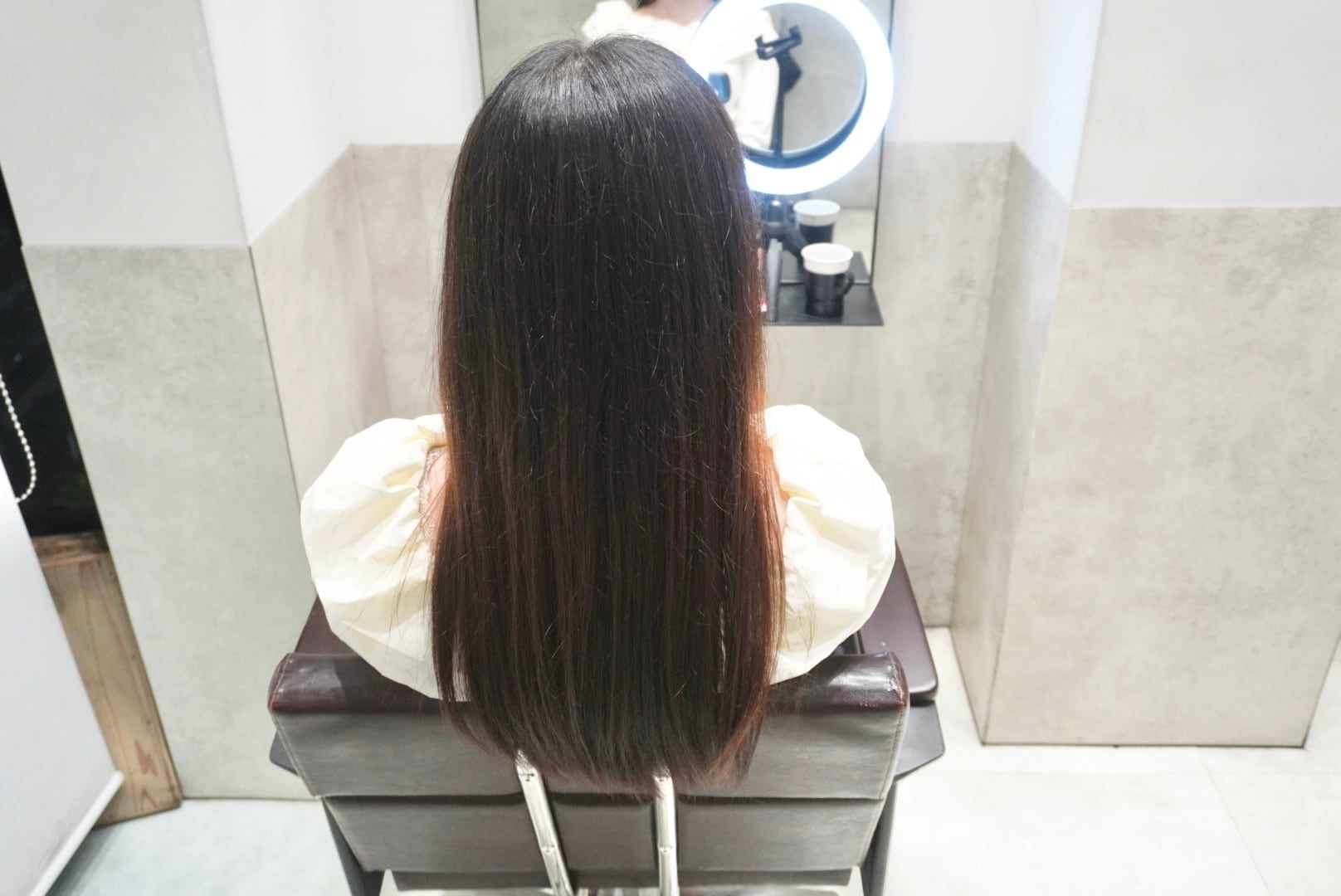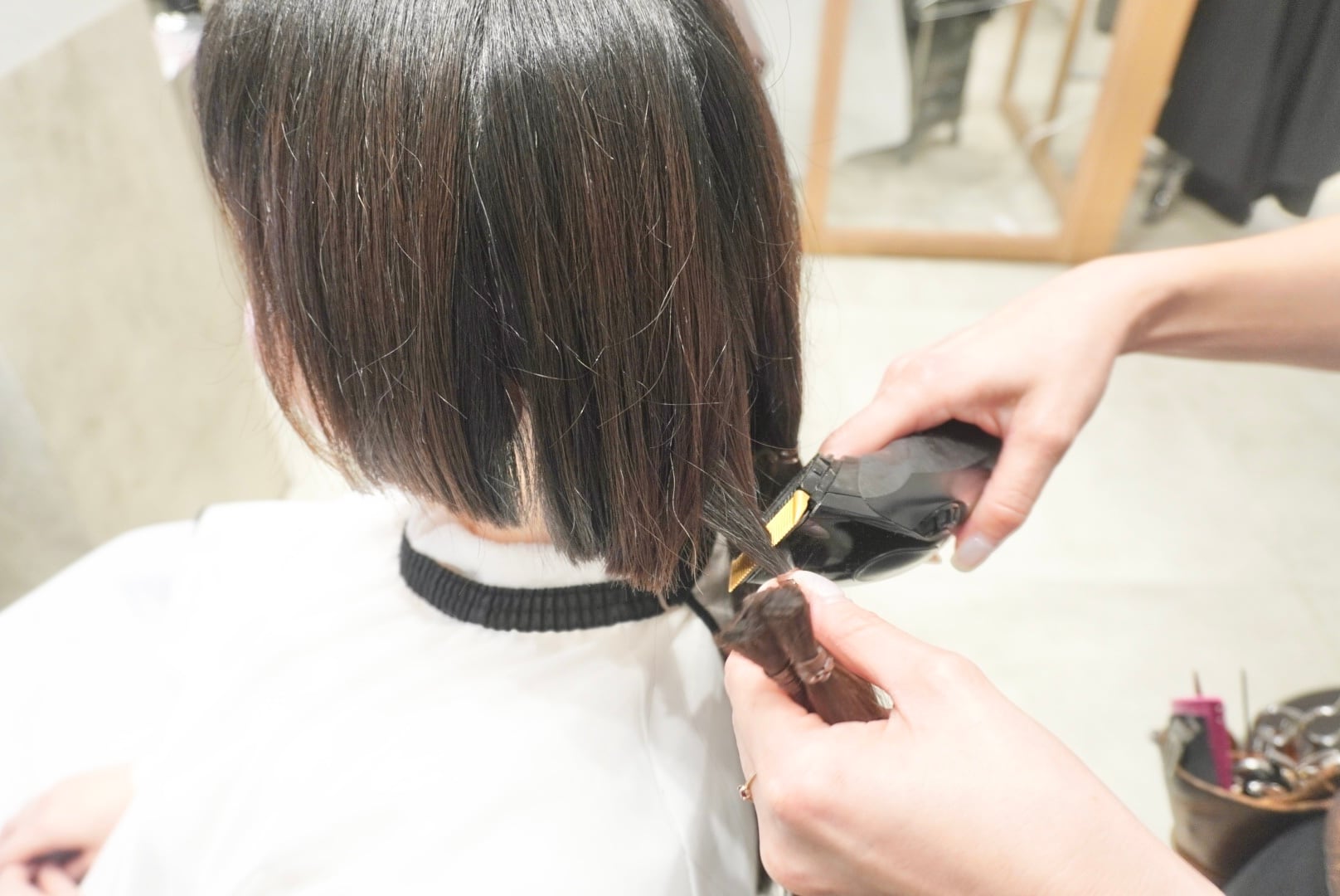 切った髪束は31cm近くあり全てヘアドネーションさせて頂き、モデル様5回目のヘアドネーションを達成しました!!!