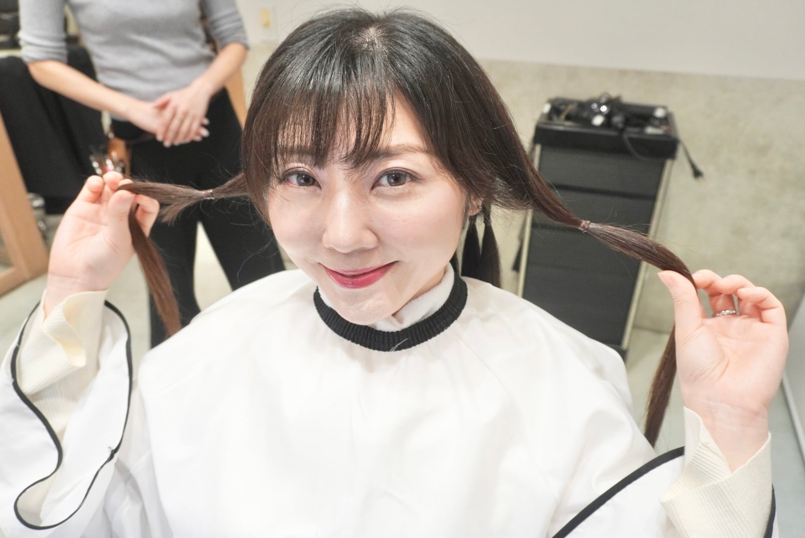 切った髪束は31cm近くあり全てヘアドネーションさせて頂き、モデル様5回目のヘアドネーションを達成しました!!!