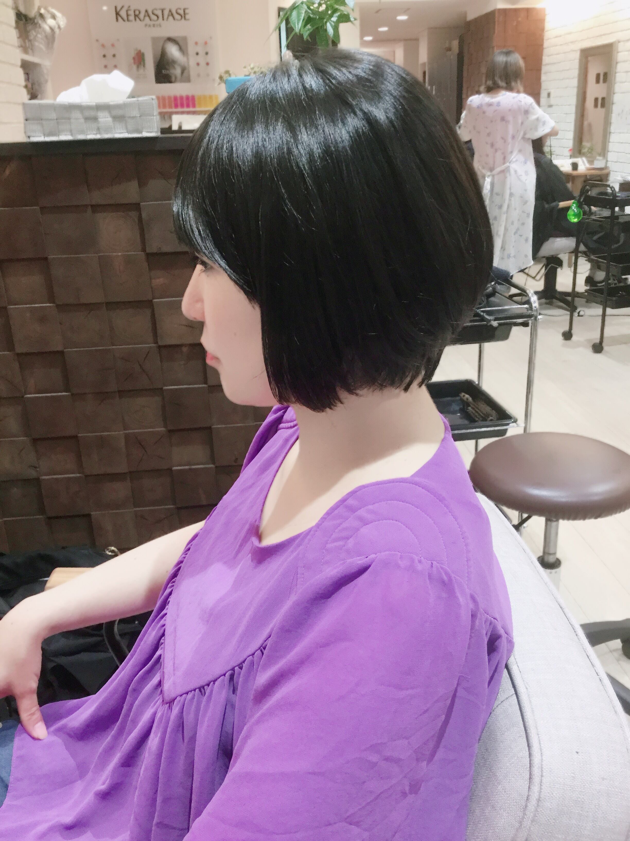 スーパロングヘアからボブへのヘアカットの様子を撮影