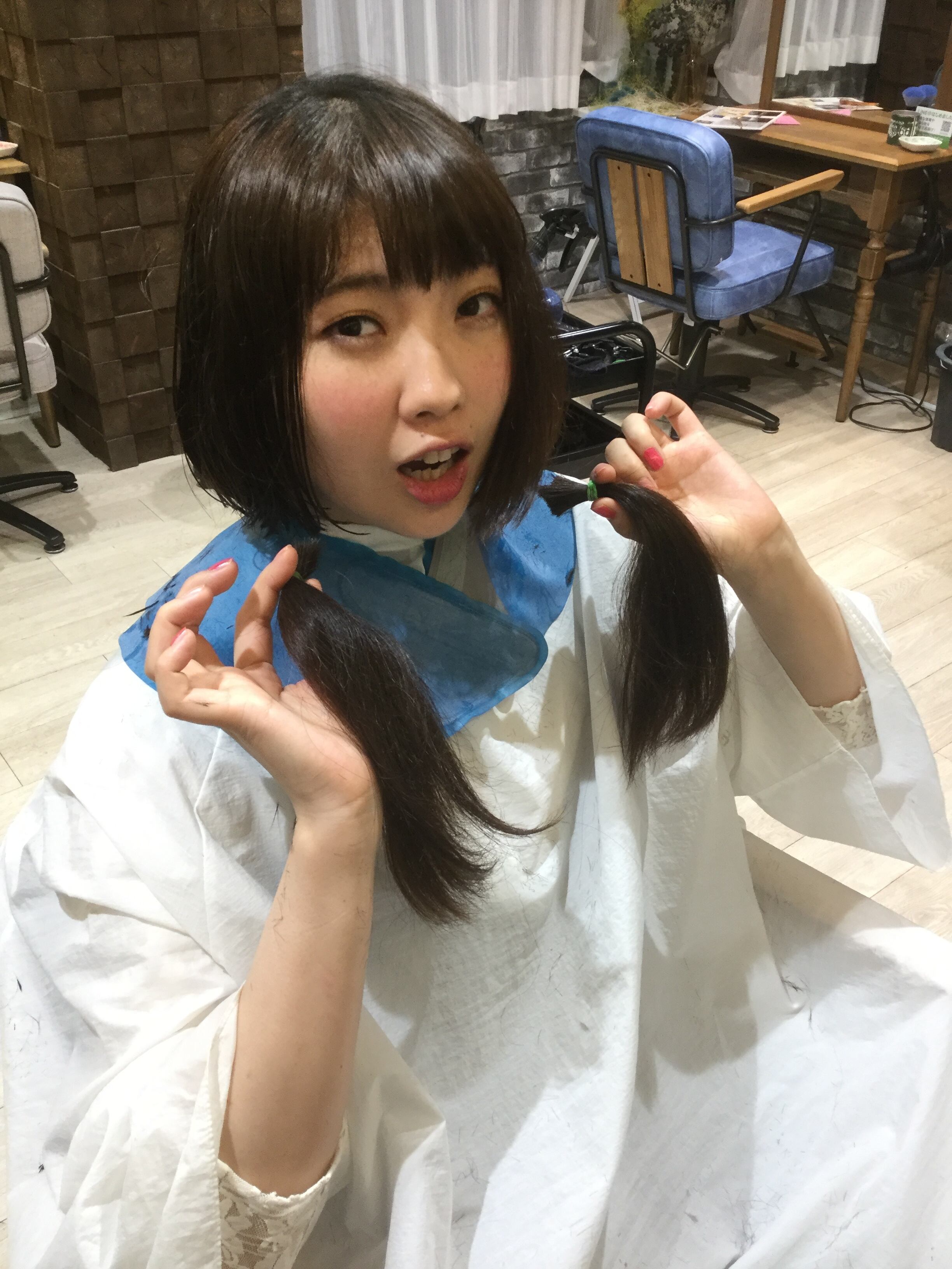 ロングヘアから短めボブへのバッサリカットの様子に密着
