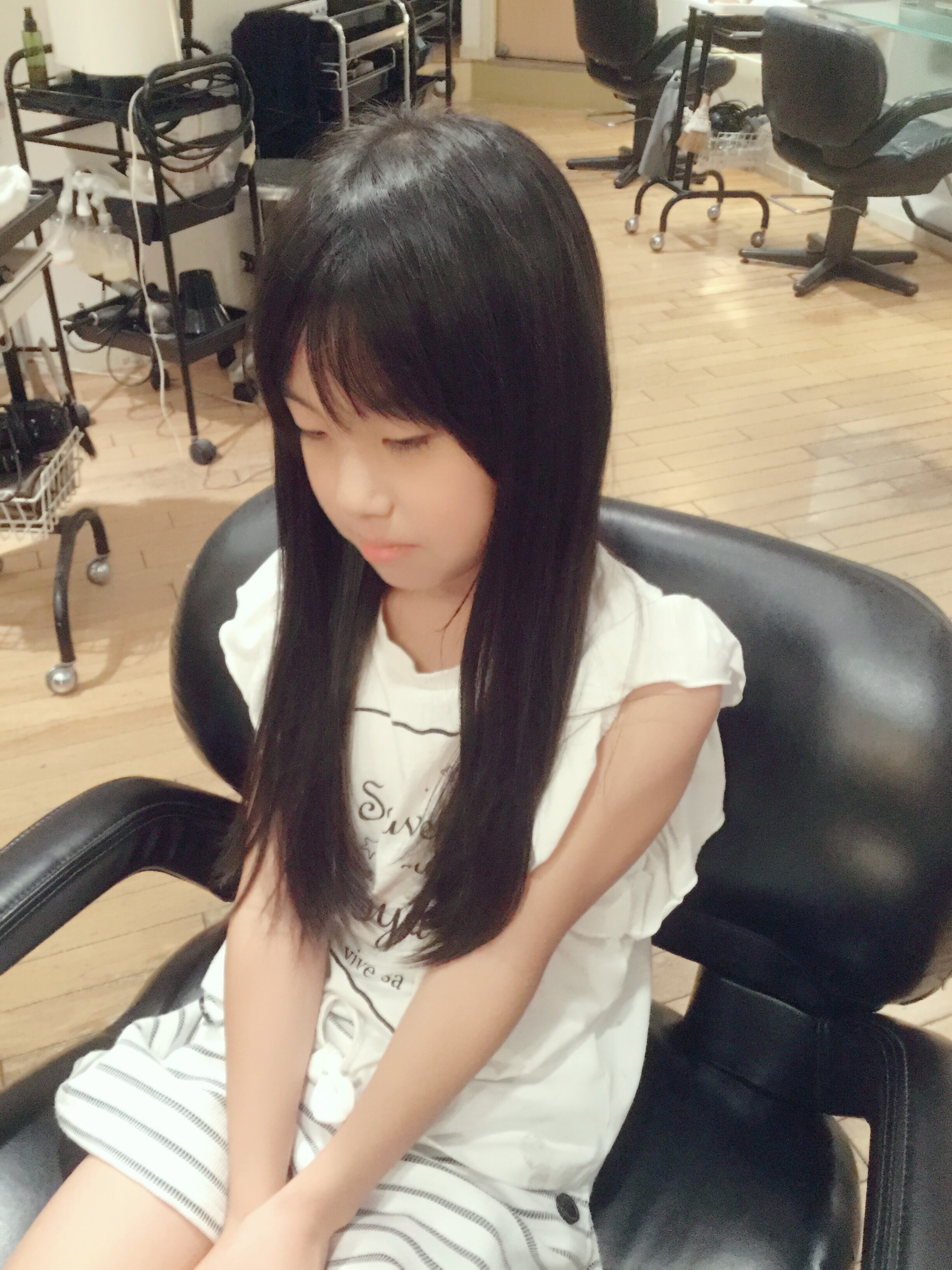 娘さんは人生初の美容室でのカットの模様を撮影!