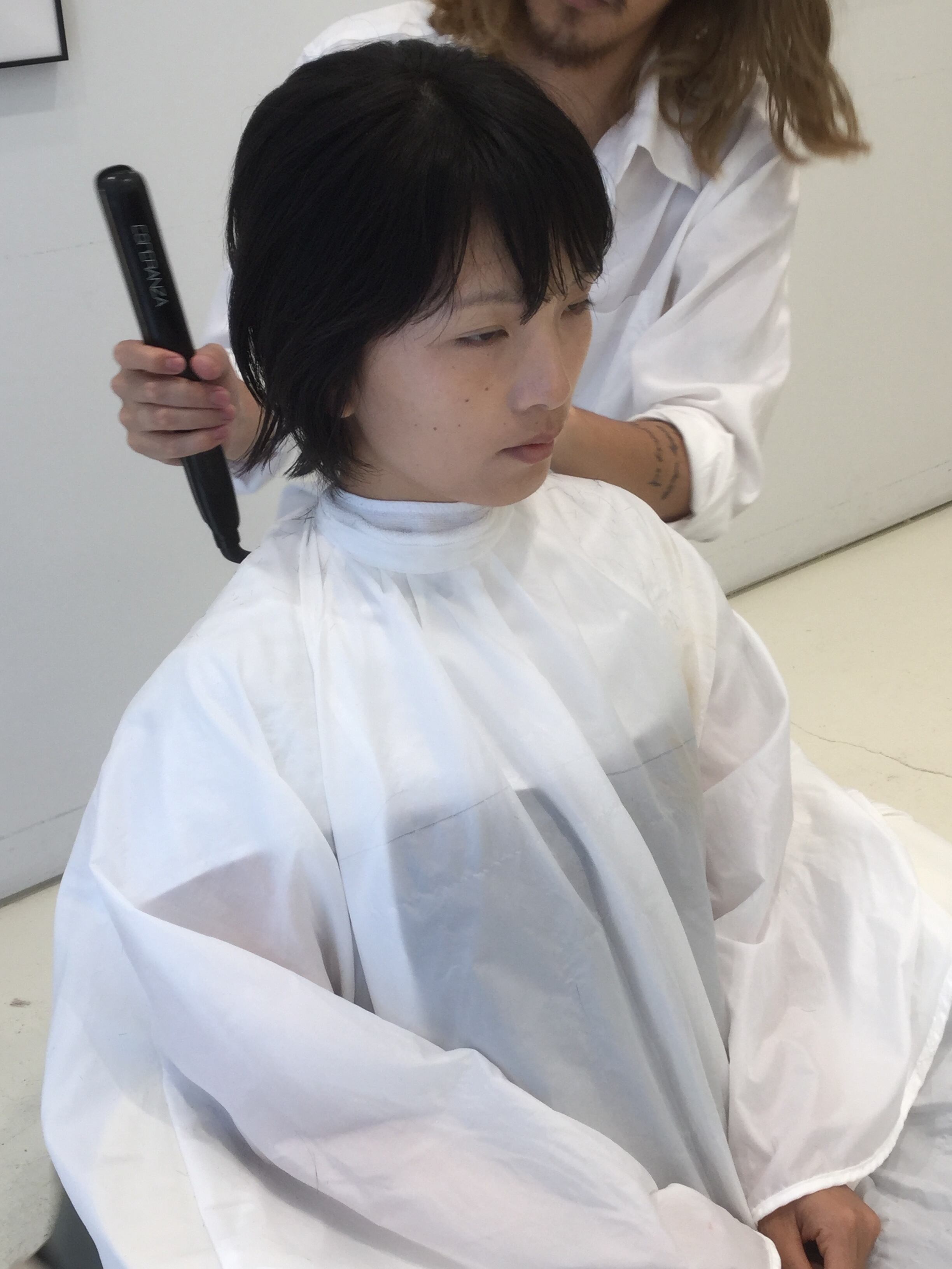 一人目のモデル様はロングヘアからショートボブスタイルにバッサリカット!!