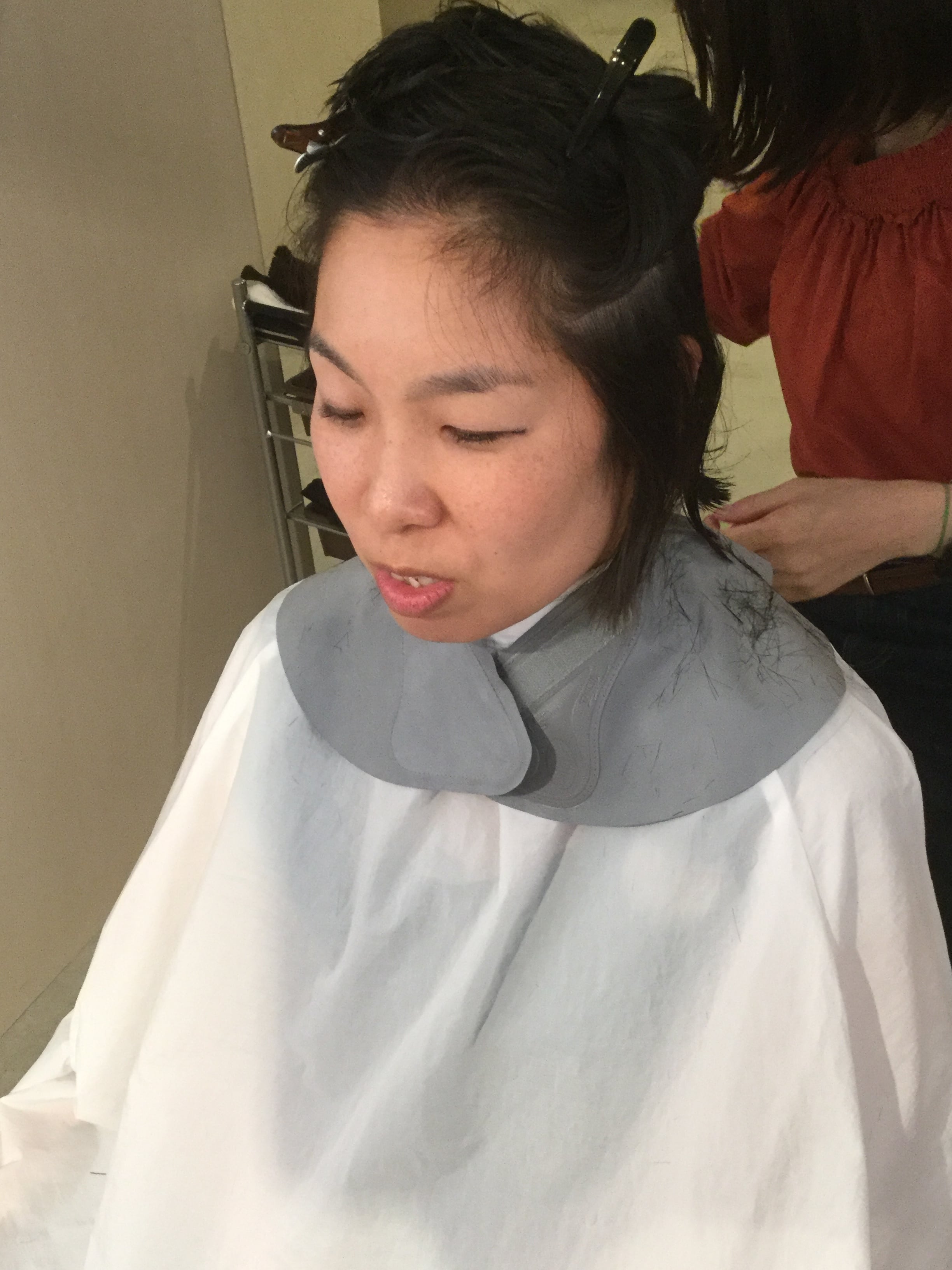 お母さんはスーパーロングヘアからショートヘアへ一気にバッサリイメチェン!