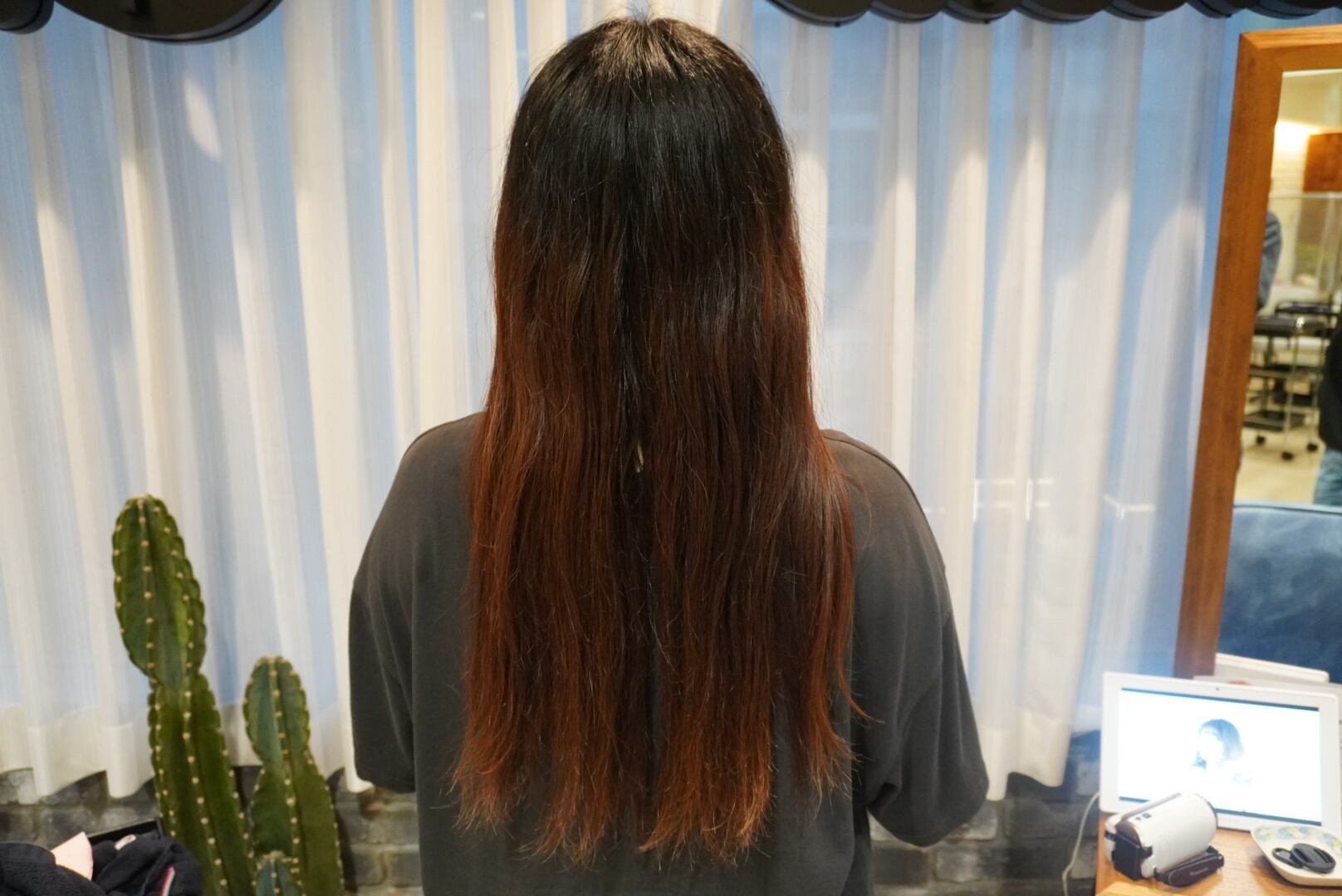 35cm近くバッサリカットし、女子高生ヘアドネーション同好会様へ寄付させていただきました