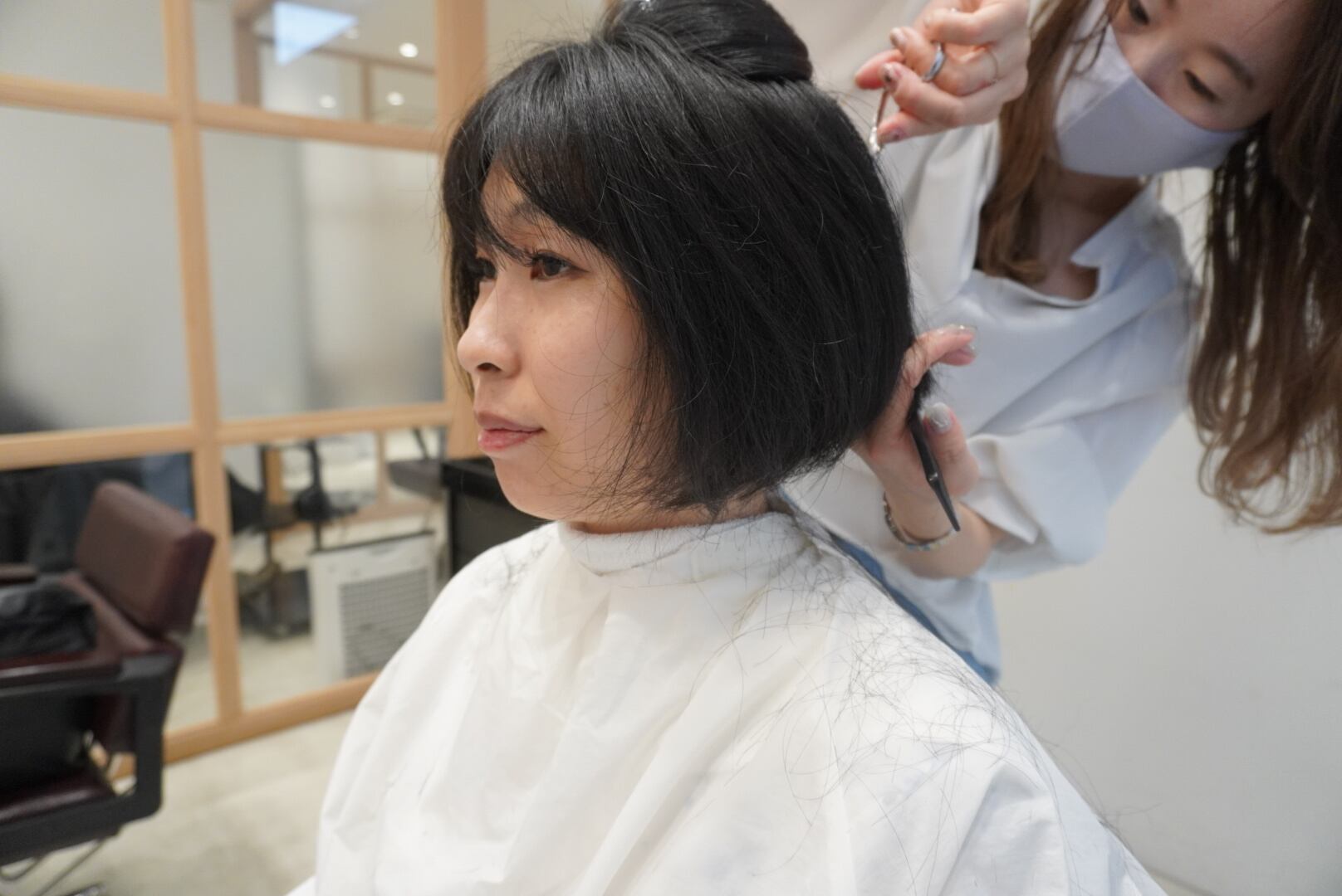 ロングヘアから前回よりも短く前下がりボブにバッサリカット!
