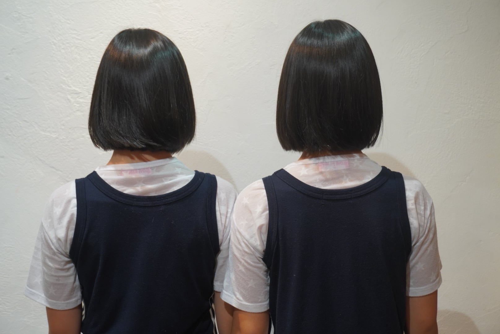 小学生のお二人はロングヘアからボブスタイルにバッサリカットして大変身!