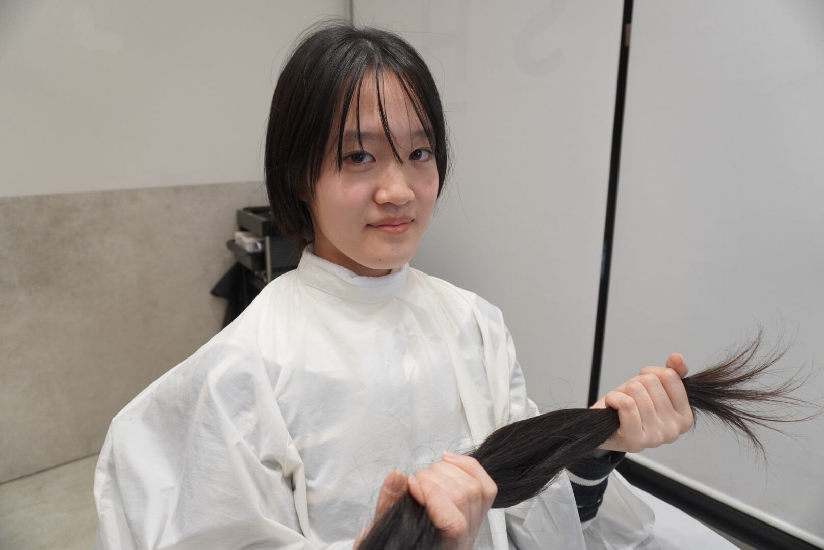 切った髪束は40cm近くあり、全てヘアドネーションさせていただきました!