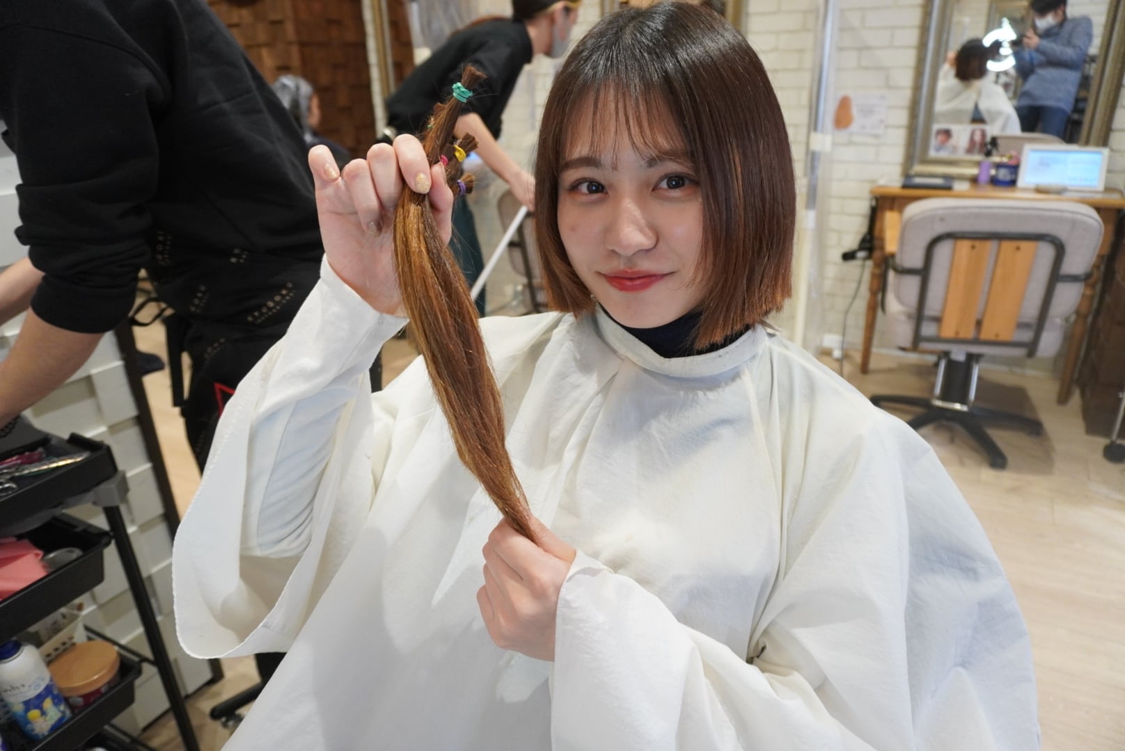 切った髪束は30cm近くあり、全てヘアドネーションさせていただきました!