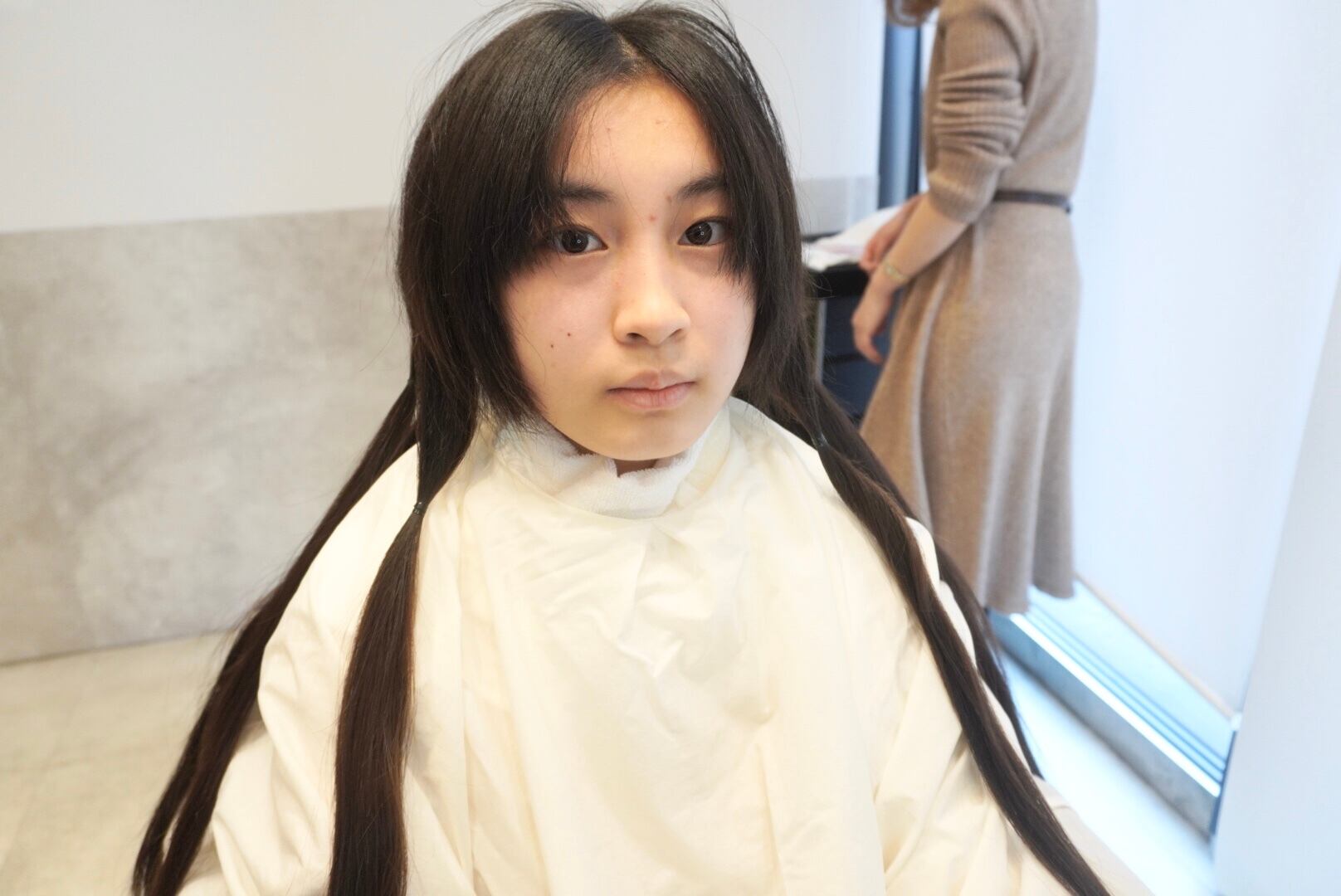 切った髪束は45cm弱あり、全てヘアドネーションさせていただきました!