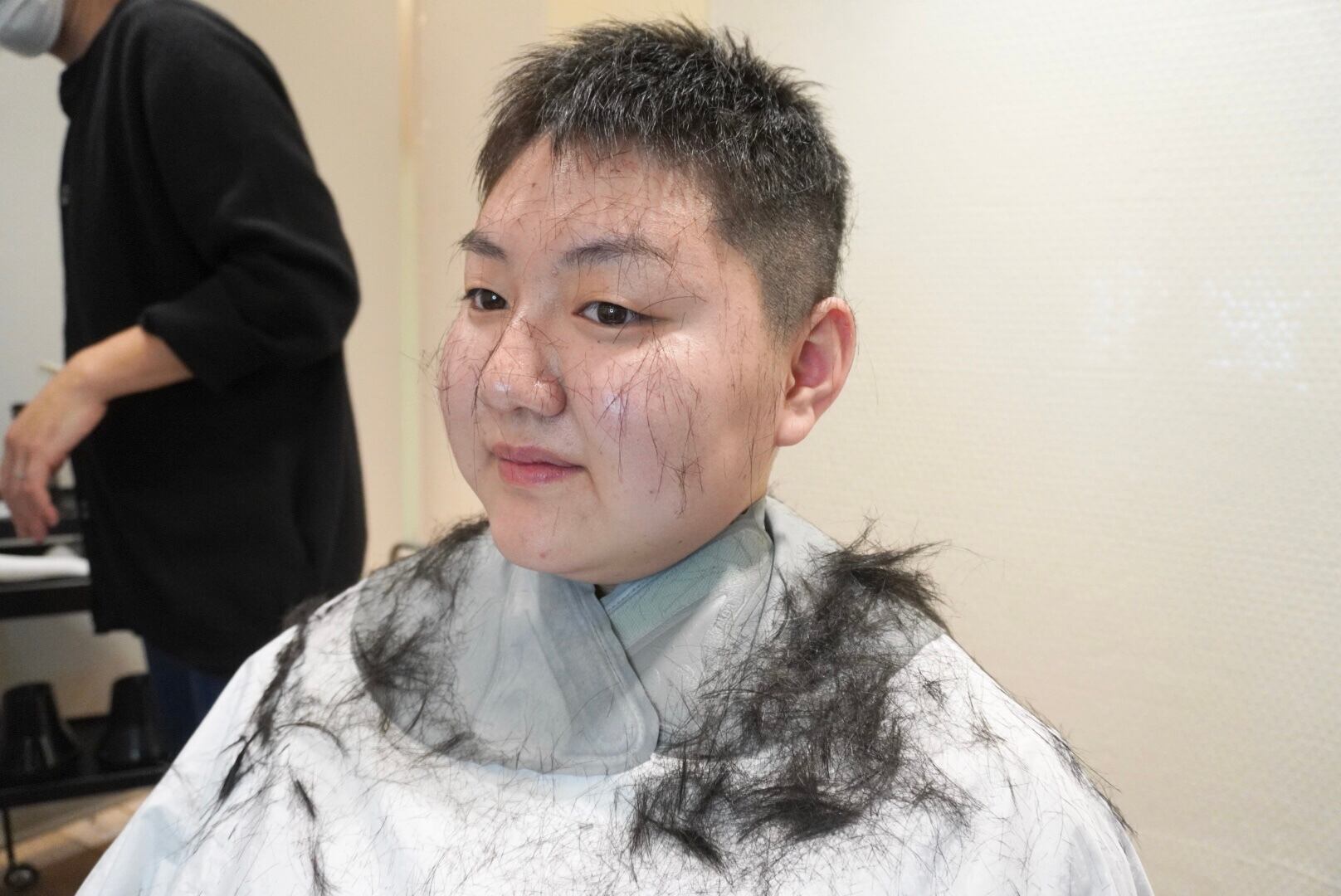 髪束は根元から30cm近く刈り取りました!今回も全てヘアドネーションいたしました!