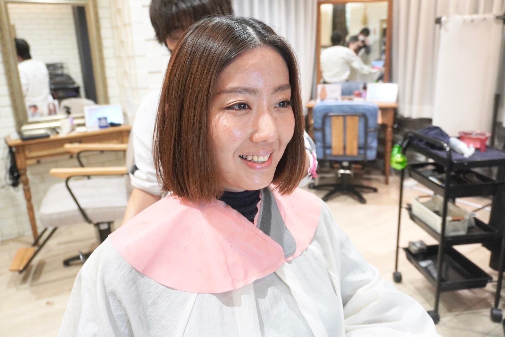腰下まであるスーパーロングヘアを10数年ぶりに前下がりボブスタイルへとカット!