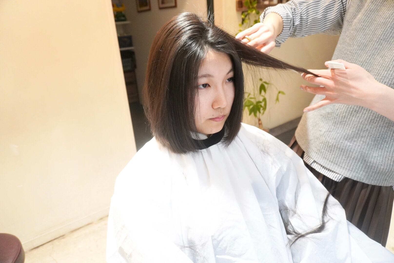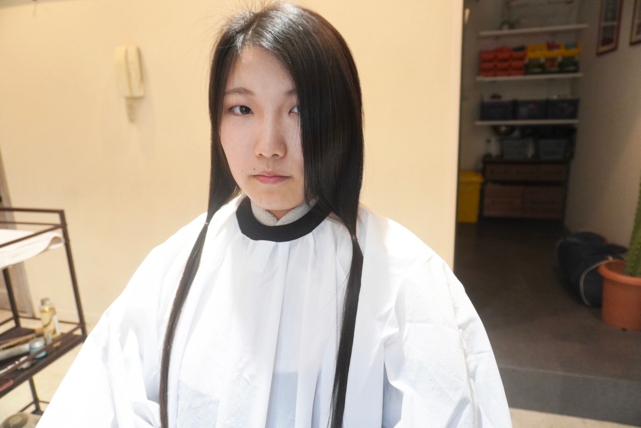 スーパーロングヘアを切りっぱなしボブスタイルまでバッサリカット!