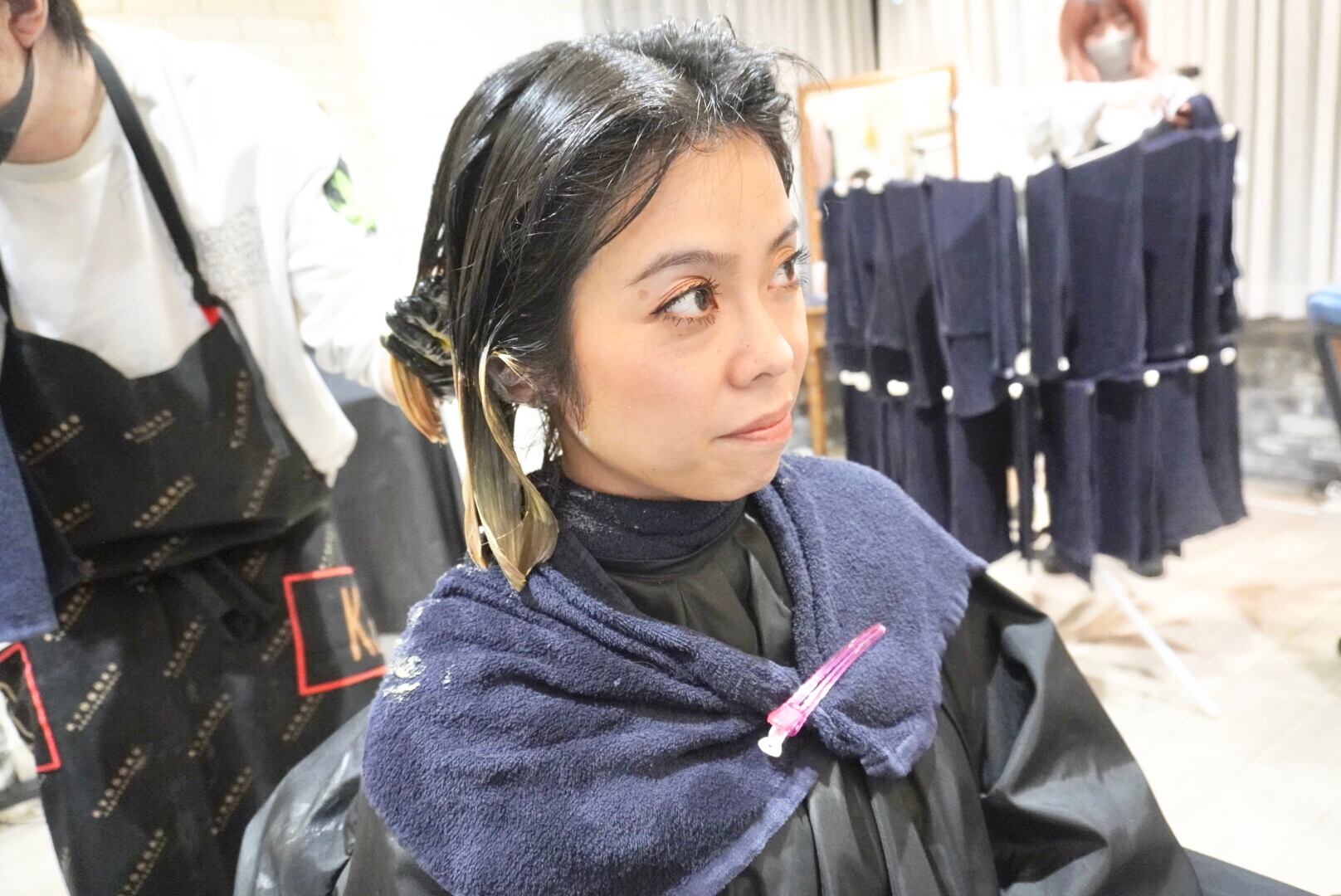 同時に部分ブリーチにてグリーン系のカラーを入れました!