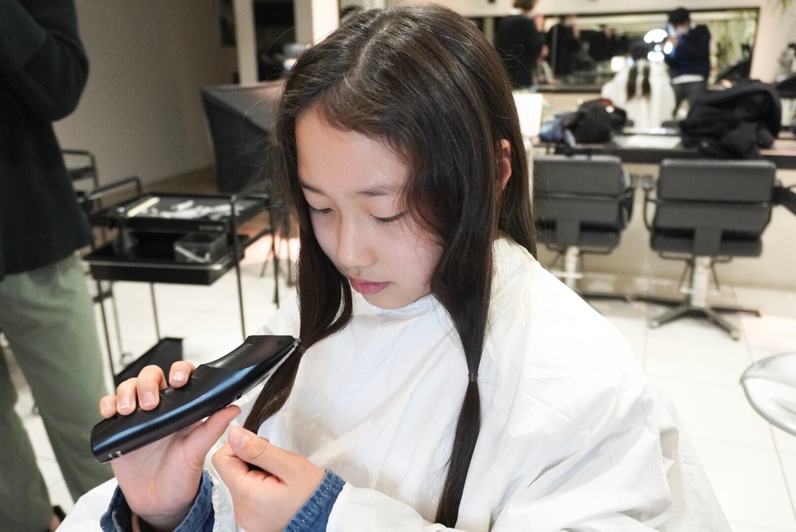 今回切った髪束はお二人とも35cm近くあり、髪束はヘアドネーションへ!