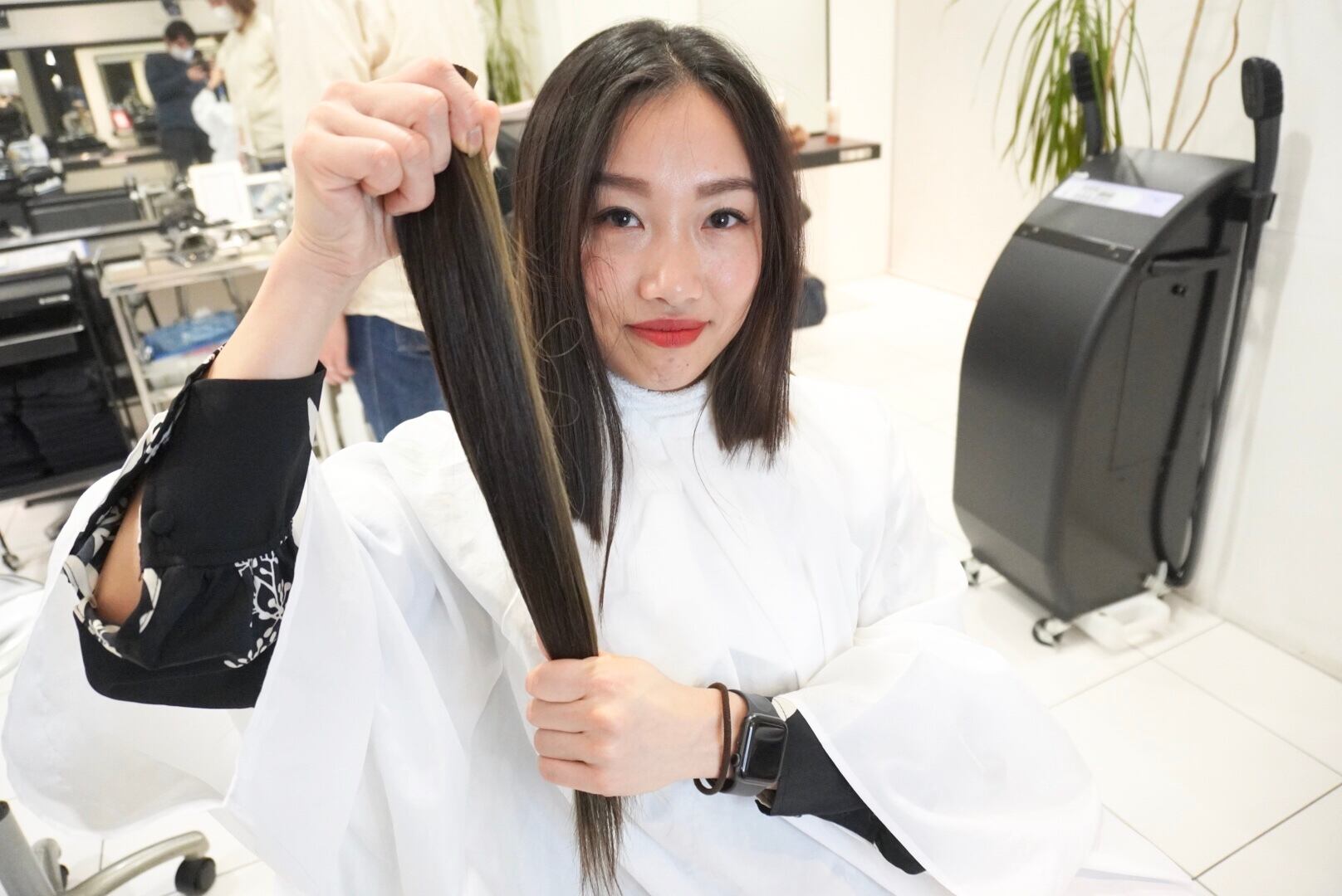 切った髪束は35cm近くあり、全てヘアドネーションいたしました!
