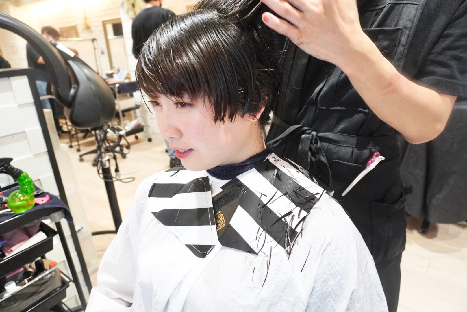前回はロングヘアをショートボブスタイルまでカットしましたが、今回は学生以来のマッシュ系のベリーショートスタイルにバッサリとカット!