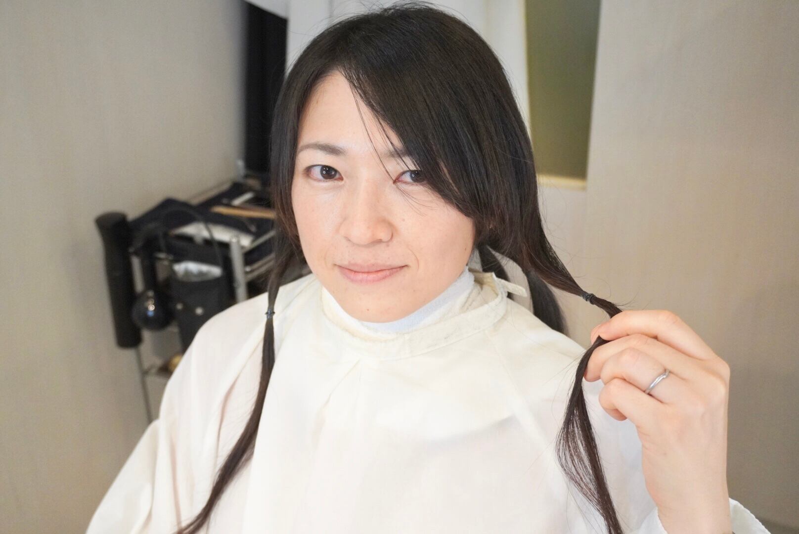 切った髪束は40cm弱あり、全てヘアドネーションいたしました!