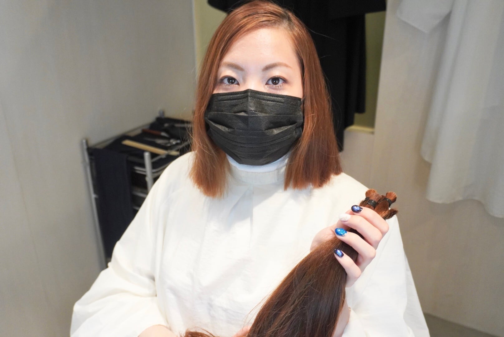 切った髪束は35cm弱あり、全てヘアドネーションさせていただきました!