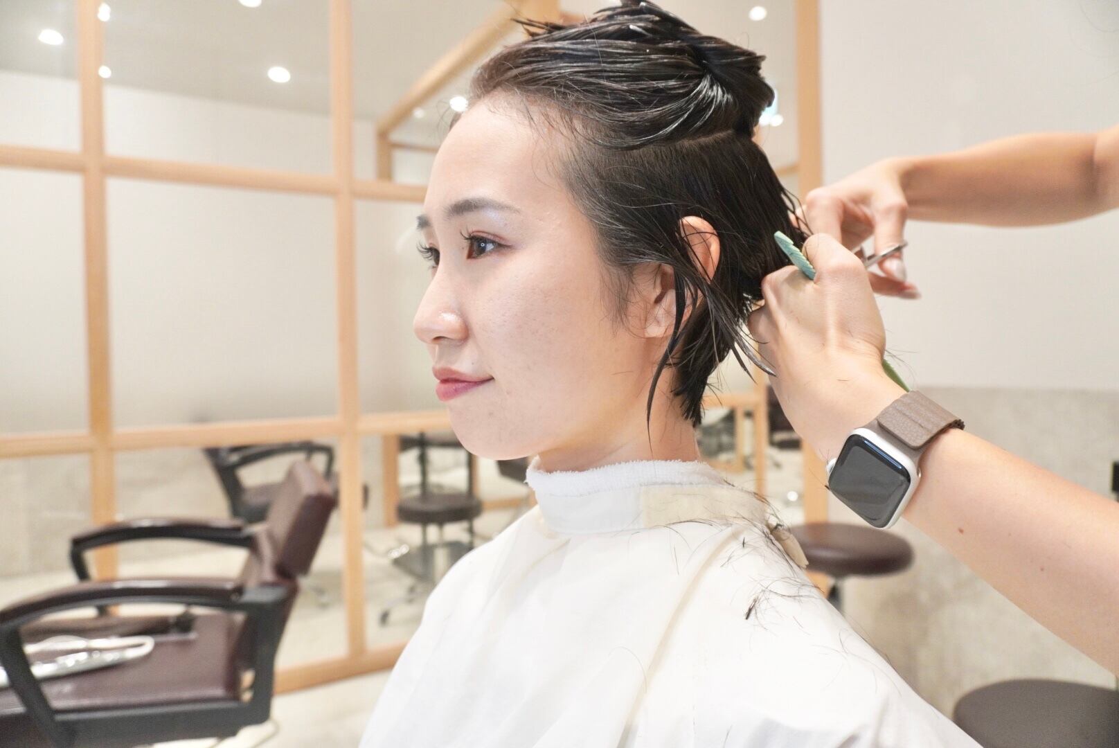 ロングヘアをハイライトが映えるショートヘアに思い切ってバッサリイメチェン!
