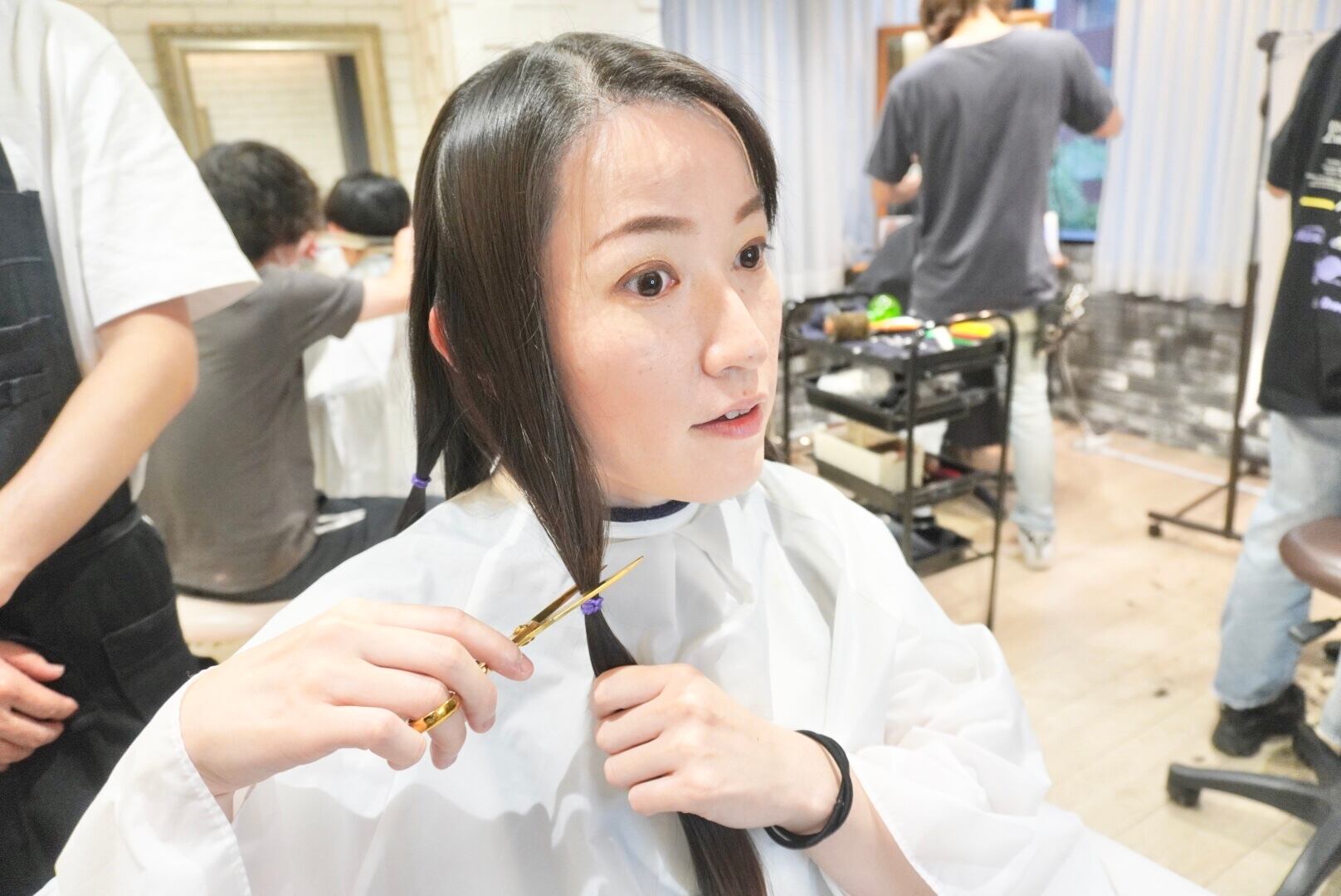 切った髪束は35cm〜40cm近くあり、すべてヘアドネーションいたしました!