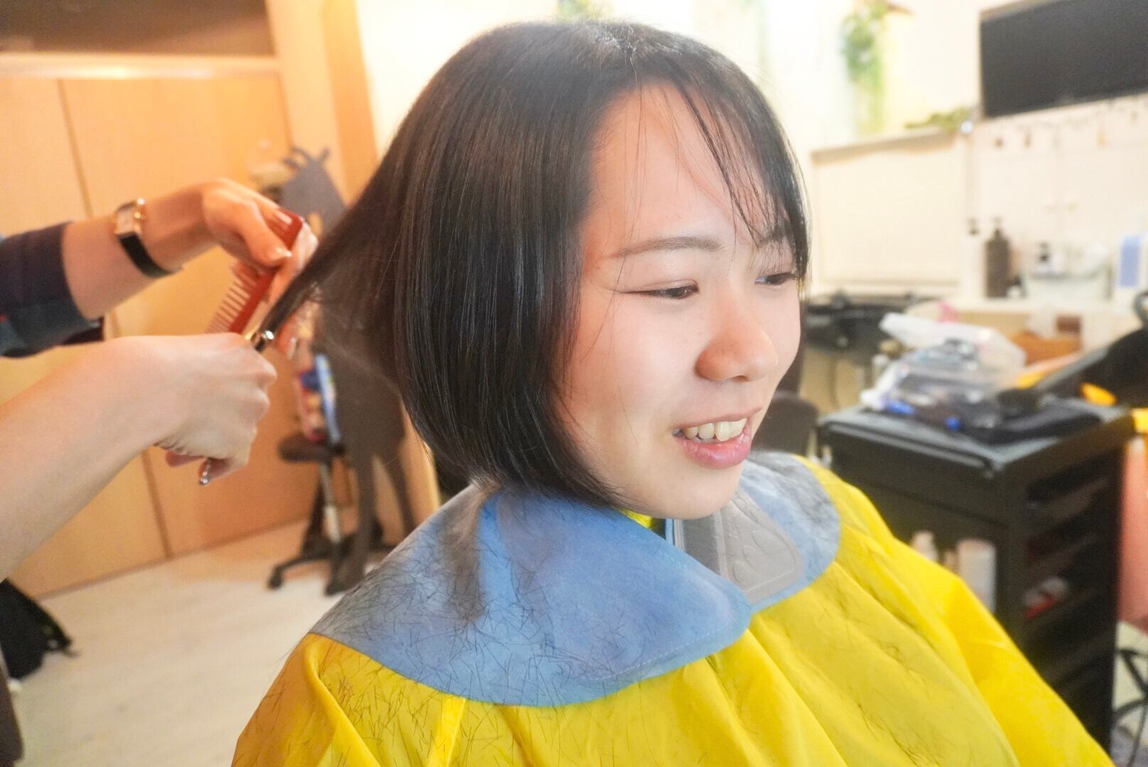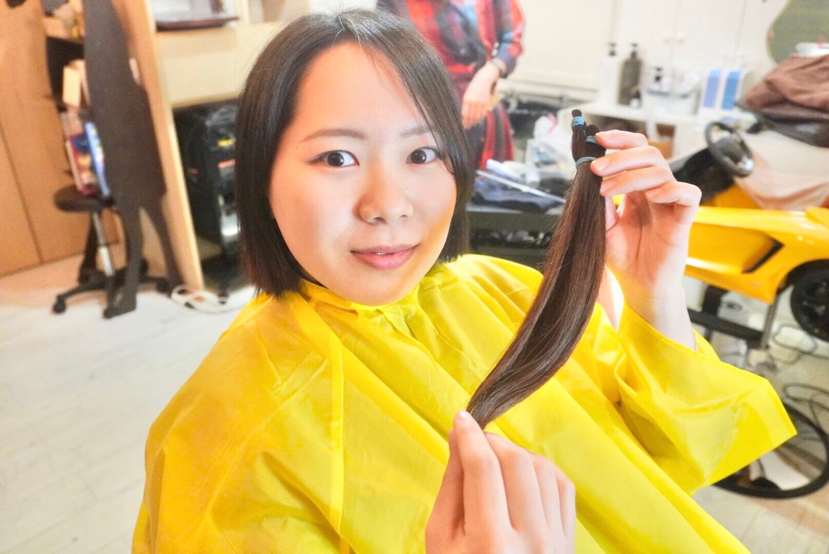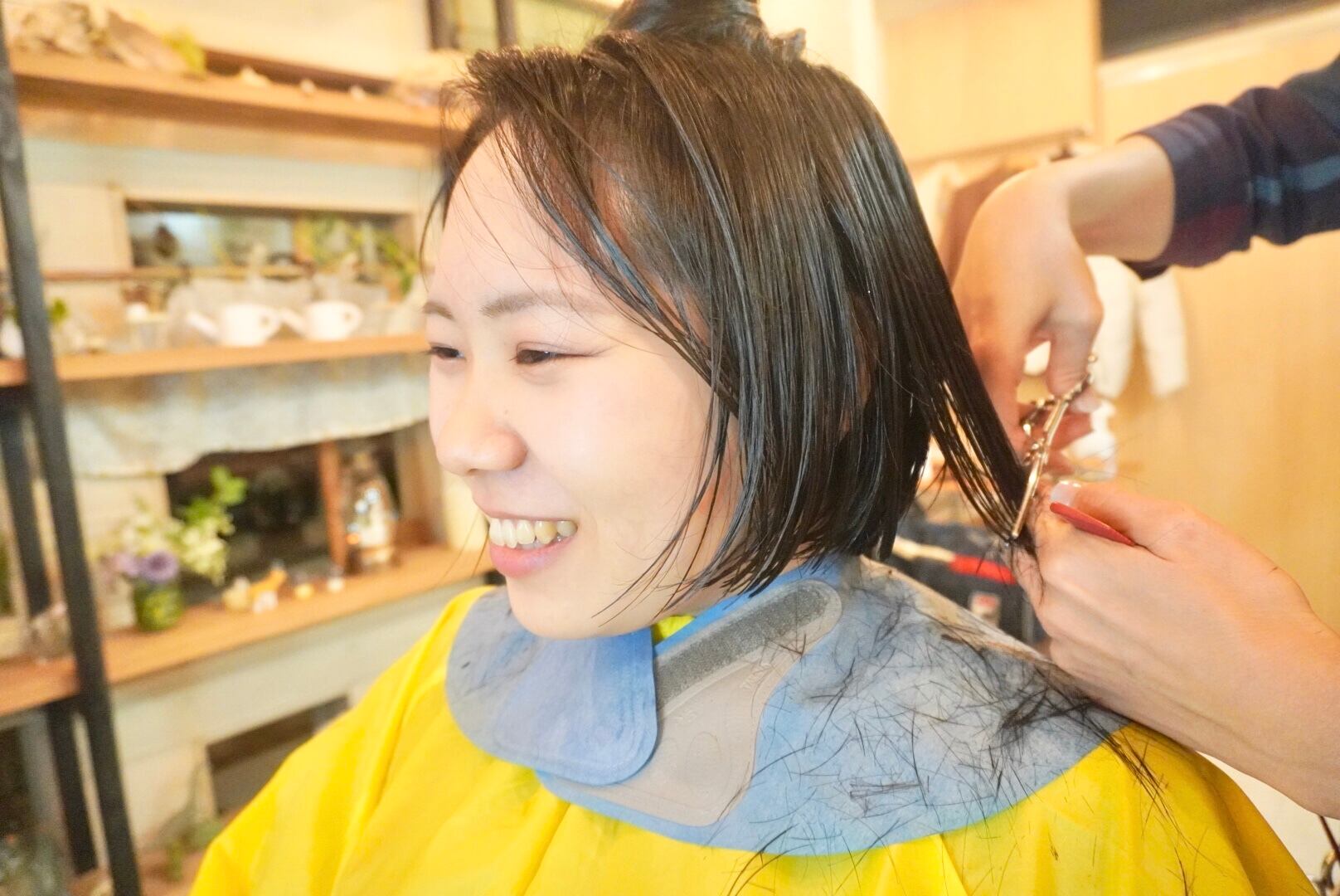 3年近く伸ばしたロングヘアを人生最短のショートボブに思い切ってバッサリカットして大変身されました!切った髪束はすべてヘアドネーションさせていただき、35cm程度ありました