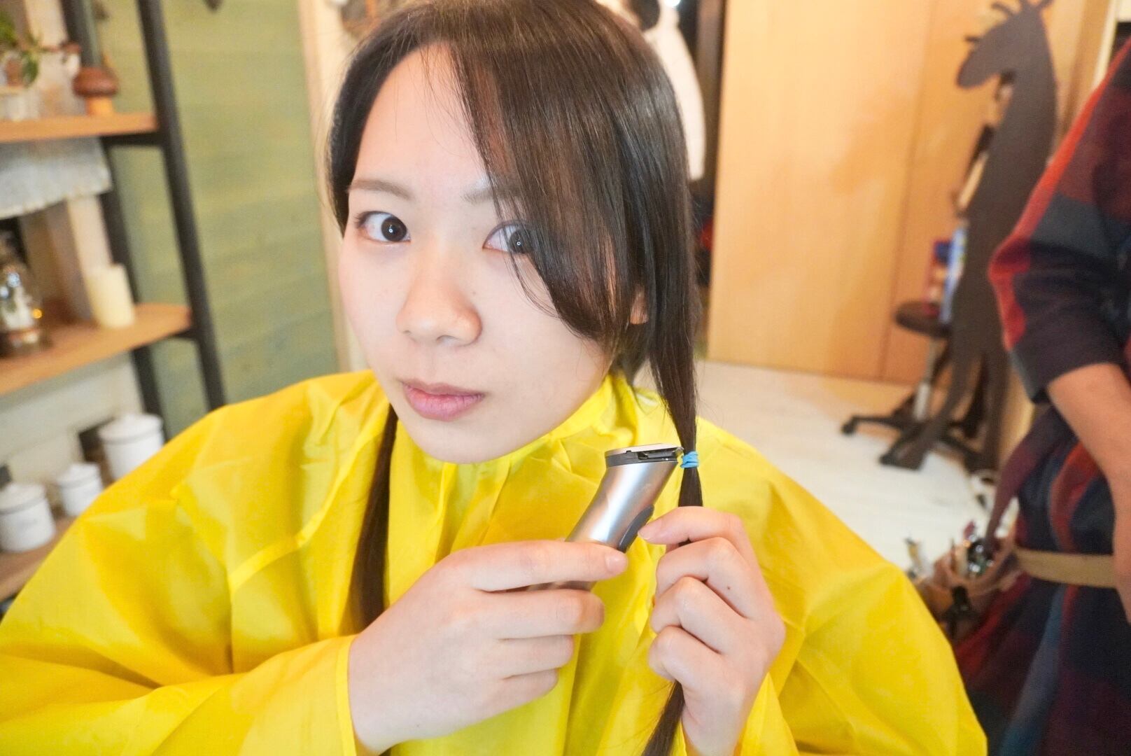 3年近く伸ばしたロングヘアを人生最短のショートボブに思い切ってバッサリカットして大変身されました!切った髪束はすべてヘアドネーションさせていただき、35cm程度ありました