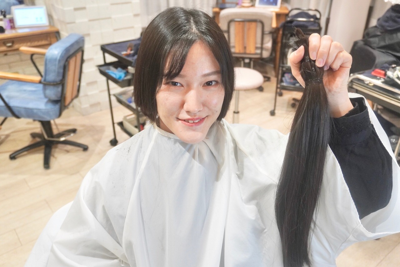 切った髪束は45cm近くあり、全てヘアドネーションいたしました