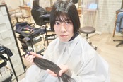 切った髪束は35cm近くあり、モデル様2回目のヘアドネーションに挑戦されました