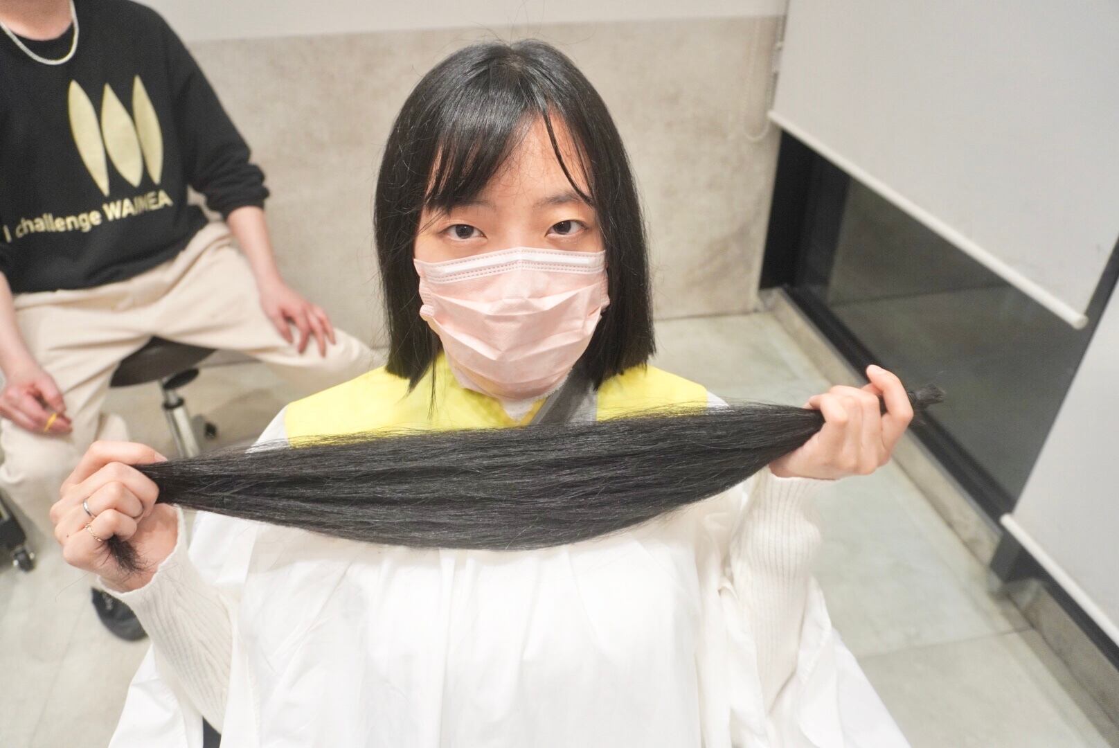 切った髪束は55cm近くあり、すべてヘアドネーションいたしました